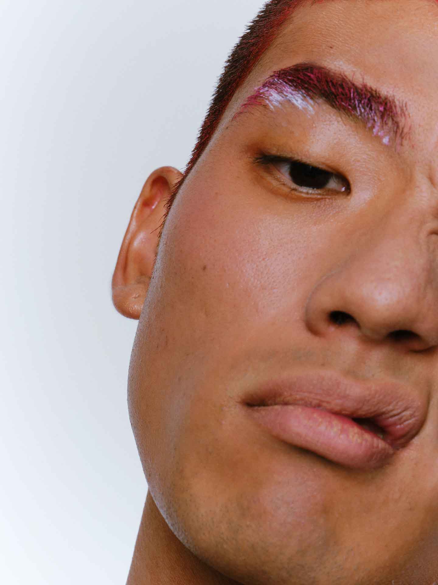 刻々と変わっていく世界と友情、日常から噴出する反抗心…。近未来的でありながらどこかエモーショナル。そんな本作品にインスピレーションを受け、メイクアップアーティストの Tamayo Yamamoto が、ダイナミックなメンズメイクを提案。大胆なチーク、ステートメントなアイメイク、エッジの効いたカラーアイブロウなど。豊かな色から紡ぎ出される二人の物語を堪能して(最終回/全2回)。