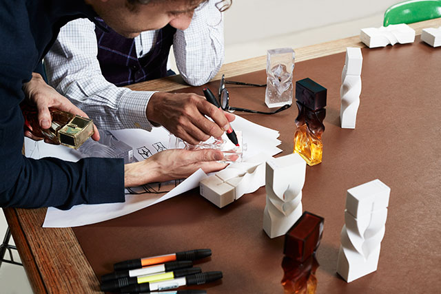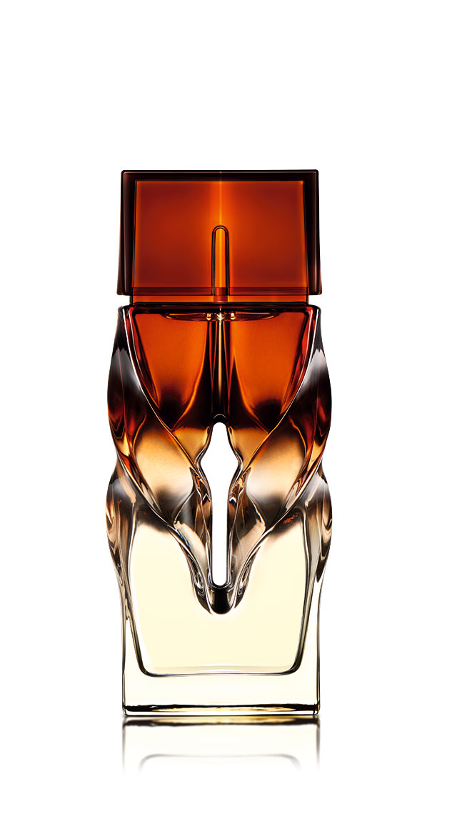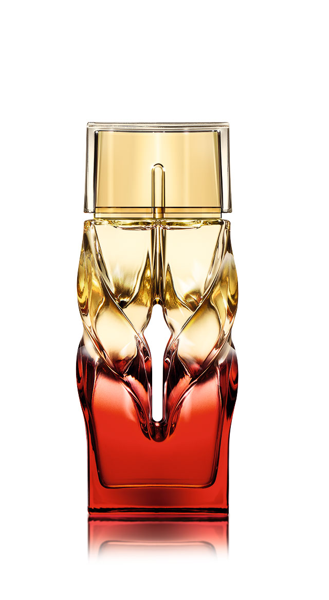 Christian Louboutin 自ら、“素晴らしい設計者” と惚れ込むデザイナー Thomas Heatherwick (トーマス・ヘザーウィック) と Thomas が創設した革新的かつ斬新なデザインと製造プロセスを誇る「Heatherwick Studio (ヘザーウィック・スタジオ)」の協力のもと、試行錯誤を重ね作り上げられた。そのデザインは、水は生きているということをアイディアに、長方形のガラスにねじりを加えることによって波のような動きを演出。このアーティスティックなボトルによって生きたフレグランスを表現した。カラーは、琥珀色、ゴールド、ロイヤルパープルの魅惑的な3種類のシンボリックな配色でそれぞれのストーリーを象徴している。