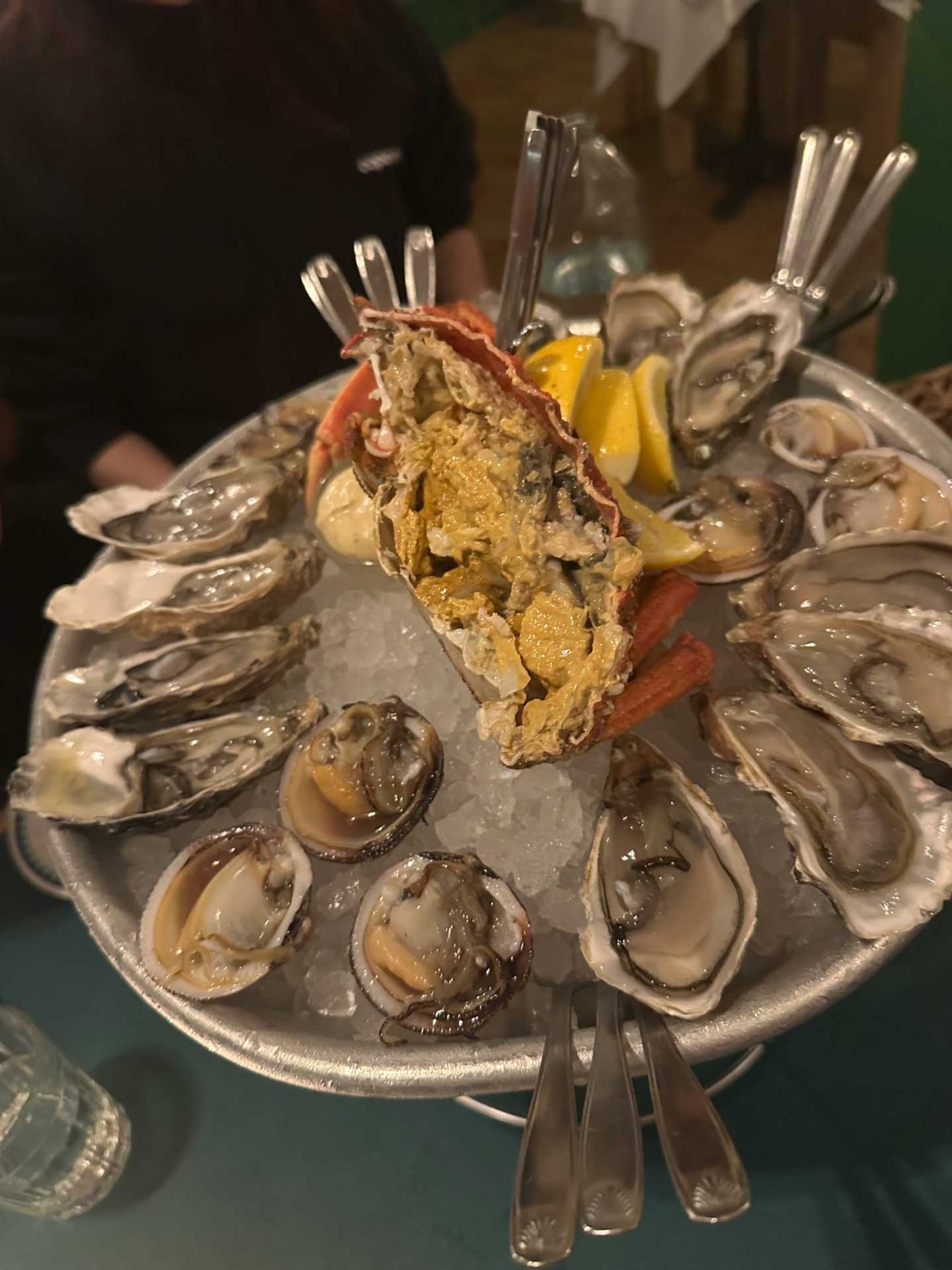 ずっと気になっていたシーフードビストロ Clamato (クラマト) に、クリエイティブディレクターの友人に誘われてようやく訪問。こぢんまりとした店内は居心地がよく、スタッフとの距離感もちょうどいい。生牡蠣や蟹などの新鮮な魚介をたっぷり味わえて、パリコレ期間中のちょうどいい栄養補給に。カジュアルながら味はしっかり本格派。ワインとの相性も抜群で、素材の魅力が引き立つシンプルな料理はどれも美味しく、大満足。気づけば会話も弾みっぱなしで、あっという間の楽しい夜に。シーフード好きにはたまらない一軒です。