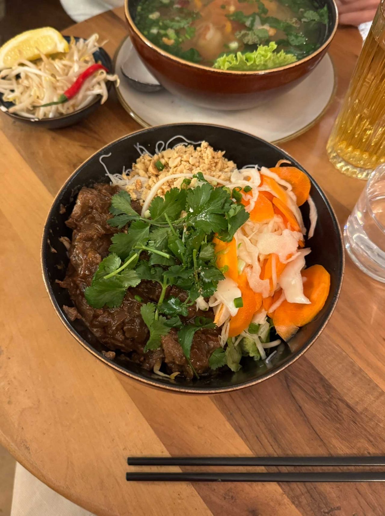 le cambodge (ル・カンボジ) は、パリ在住の友人に連れて行ってもらってから、何度も通っている10区のお店。パリ滞在中はいつも毎日のようにベトナム・カンボジア料理を食べますが、ここのボブンがいちばん好み。細い麺が甘酸っぱいソースと絡んで、野菜もたくさん食べられる。ポーションも十分あるのでおなかいっぱい、なのに米麺なので重たくないところも好き。わたしは牛肉をよく選んでる気がします。