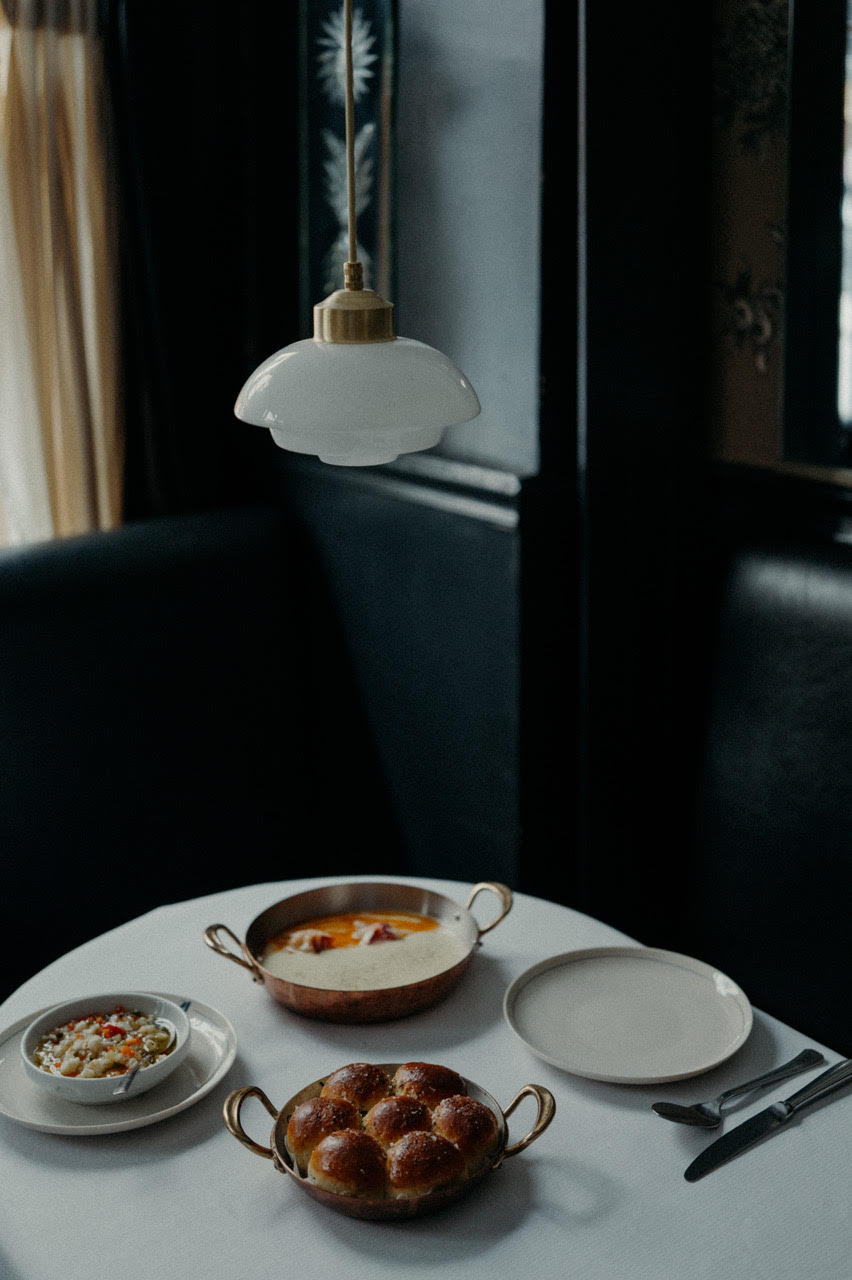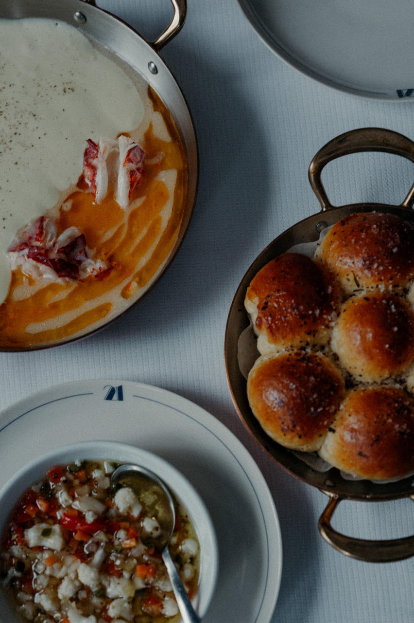 真鍮製の魚があしらわれた玄関ドアの取っ手を引き、キャンドルの灯りに包まれた店内へ一歩足を踏み入れた瞬間、まるで別の時空への境界を越えたかのように感じられます。6区の細い通りに満ちる活気はすっと溶け去り、そこには同時に「古さ」と「新しさ」が共存する空間が広がっています。愛され続けてきた象徴的なシーフードの名店は、私たちのお気に入りのシェフ、Braden Perkins によって新たな息吹を吹き込まれました。彼は海の恵みを主役に据えたメニューで過去へのオマージュを捧げつつも、ひと口ごとに心地よく展開していく、遊び心あるモダンな感覚を表現しています。手で練り上げたバターをたっぷり塗った温かなパーカーハウスロールや、堂々たるロブスター・テルミドールは、クラシックなアメリカン・ステーキハウスを思わせます。一方で、デザートの前に供される柑橘のかき氷は、現代的な日本のひねりを効かせた口直しとして登場します。