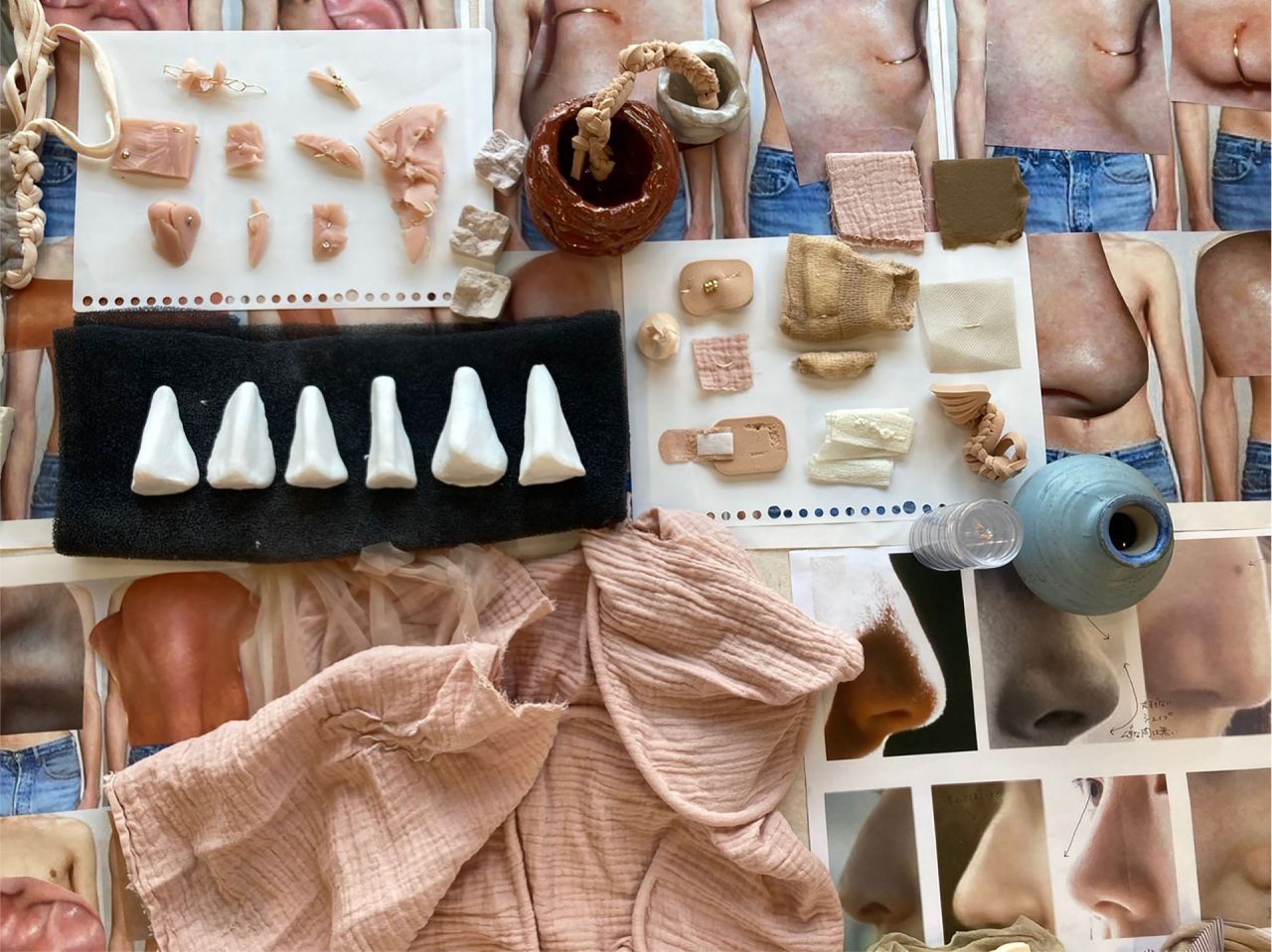 1998年生まれのアーティスト・河又明日香。企業でニットデザイナーを務めながら、ファッションクリエーションを学ぶ場 coconogacco (ここのがっこう) に通い自身の表現を探求した。本展は、2025年4月に富士吉田にて実施された coconogacco 修了展のポートフォリオレビューにおいて、写真家・金川晋とビジュアルアートブック専門の書店 flotsam books (フロットサムブックス) のオーナー・小林孝行による審査で優秀賞に選出されたことを記念して行われる。河又明日香による「Scentless (無臭の優しさ)」では、これまで研究してきた「傷や痕跡」「骨の構造」といったモチーフをもとに制作した作品を中心に紹介する。河又は、服を主張としてではなく「問いかけ」として投げかけ、編み物の余白を通じて言葉にならない感情にアプローチをかけてきた。見落とされそうなもの、壊れやすいものに触れながら、人が人であることの揺るぎなさを静かに確かめる本展。河又のイマジネイティブな世界観は、きっと観る者自身の感覚と美意識を呼び起こしてくれるはず。