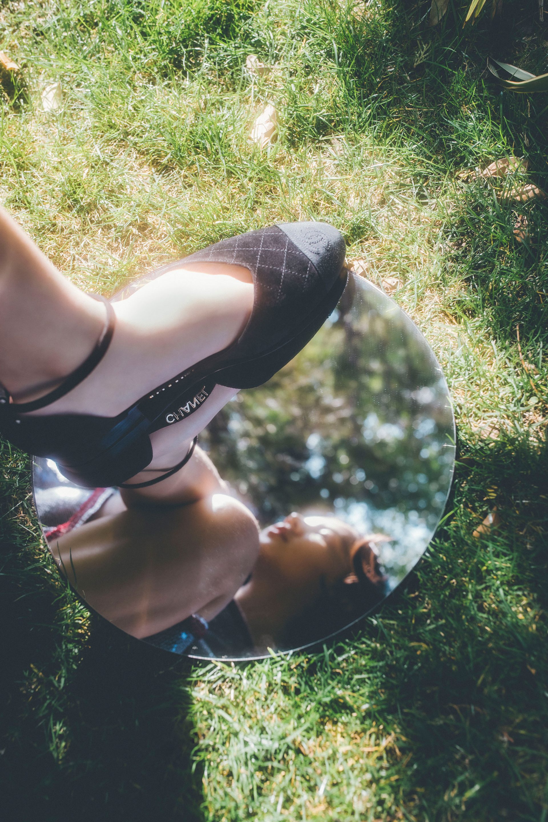 CHANEL らしいシックな洗練をまとった2枚のジャケット。ひとつは全面にスパンコールを刺繍して、ミニスカートと合わせて楽しむセットアップ。太陽の光を全身に浴びて惜しみなく輝く、大胆さとフレッシュさがありながら、メゾンのコードに沿った直線的なラインがエレガンスを忘れない。足元にはアイコニックなバイカラーシューズを再解釈した、アンクルストラップのフラットシューズ。さりげなく内側にあしらわれたゴールドのロゴプレートが、一歩足を踏み出すたびにキラリと光る。赤と黒のバイカラーでトリミングされたもう1枚のジャケットは、艶やかなレザー仕立て。ふんわりバルーンシルエットのサテンスカートがハイウエストから広がって、コケティッシュな魅力を軽やかに引き立てる。