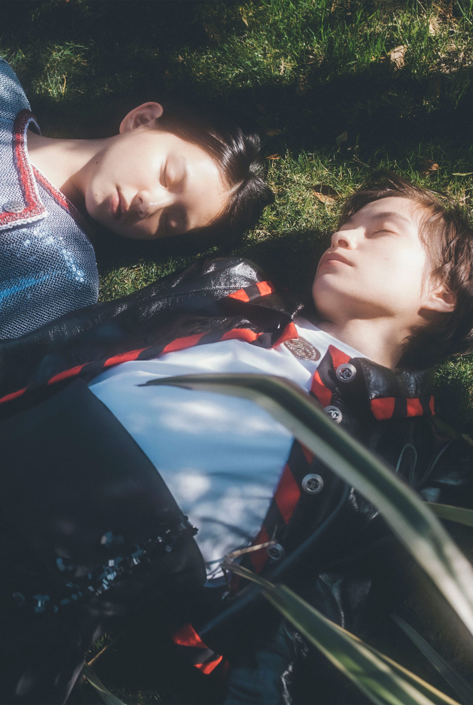 1950年代にフランスで始まった映画のムーヴメント、ヌーヴェルヴァーグにインスパイアされたという今回は、映画のヒロインのように存在感を放つルックがずらり揃う。素足にミニスカートで足元も軽快に、注目のキールックを、モデルの太田莉菜と中島セナがフレッシュに着こなした。