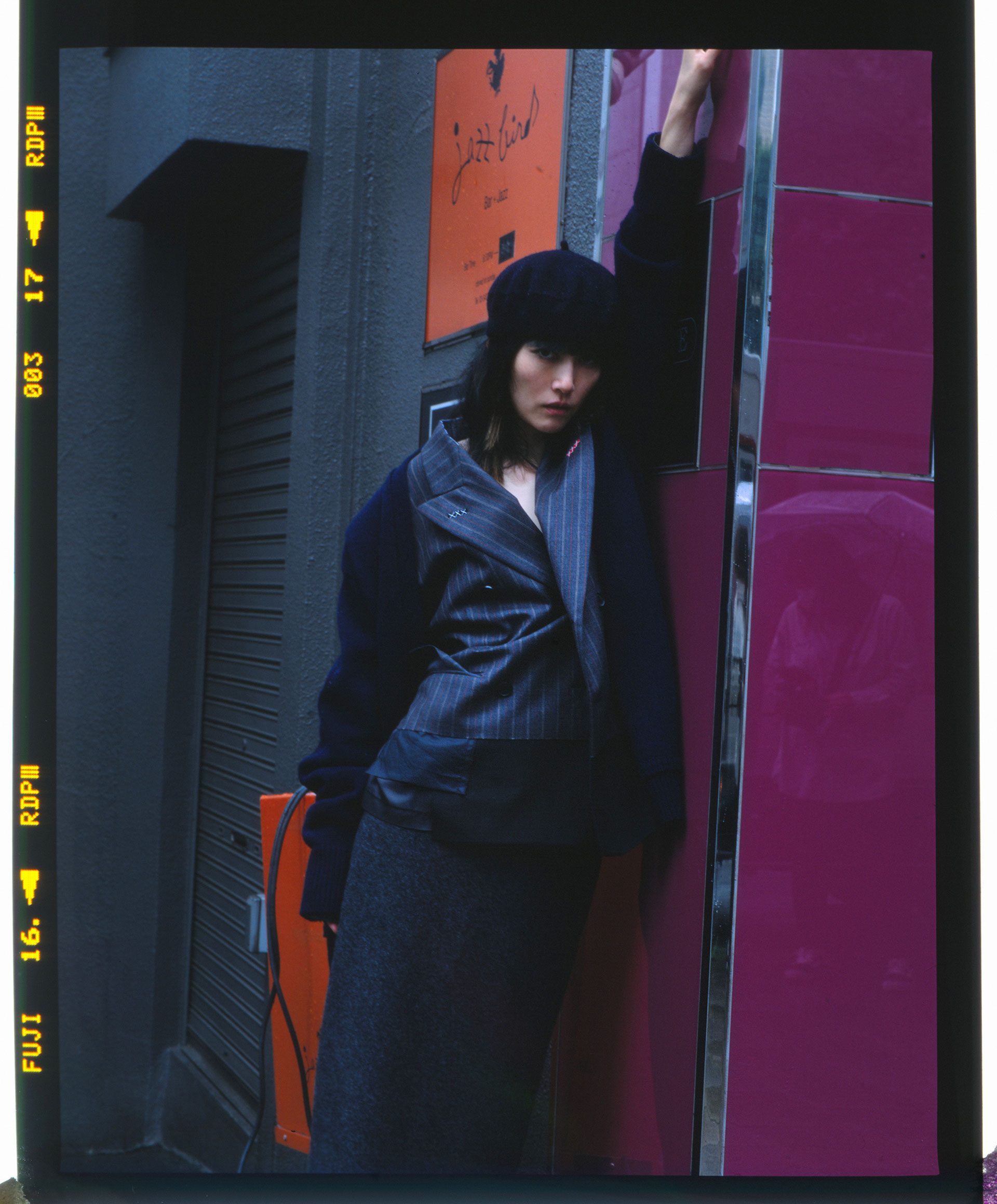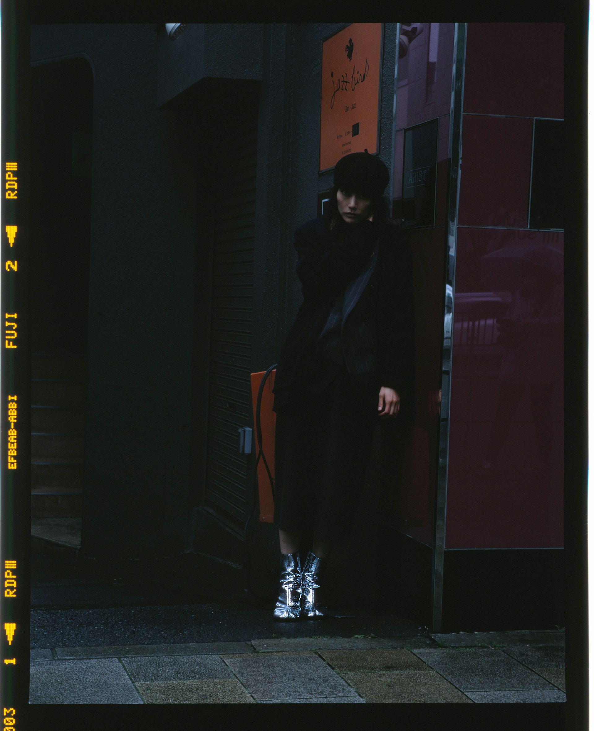 今の菊地に着せたいと、北村が選択したのが Maison Margiela (メゾン マルジェラ)。中でもメゾンのコードを反映して、普遍のスタイルとアイコニックなワードローブを再定義したジェンダーレスなコレクション「アイコンズ」を手に取った。そんな、大胆なデザインながらフォーマルにまとめられた装いを纏った彼女を写真家・鈴木親が撮影する。菊地の表情、あえて服とミスマッチにした撮影場所など、自然現象である雨さえも演出のように思わせるような独自の作風であらゆるシーンをとらえた。(第2回/全4回)