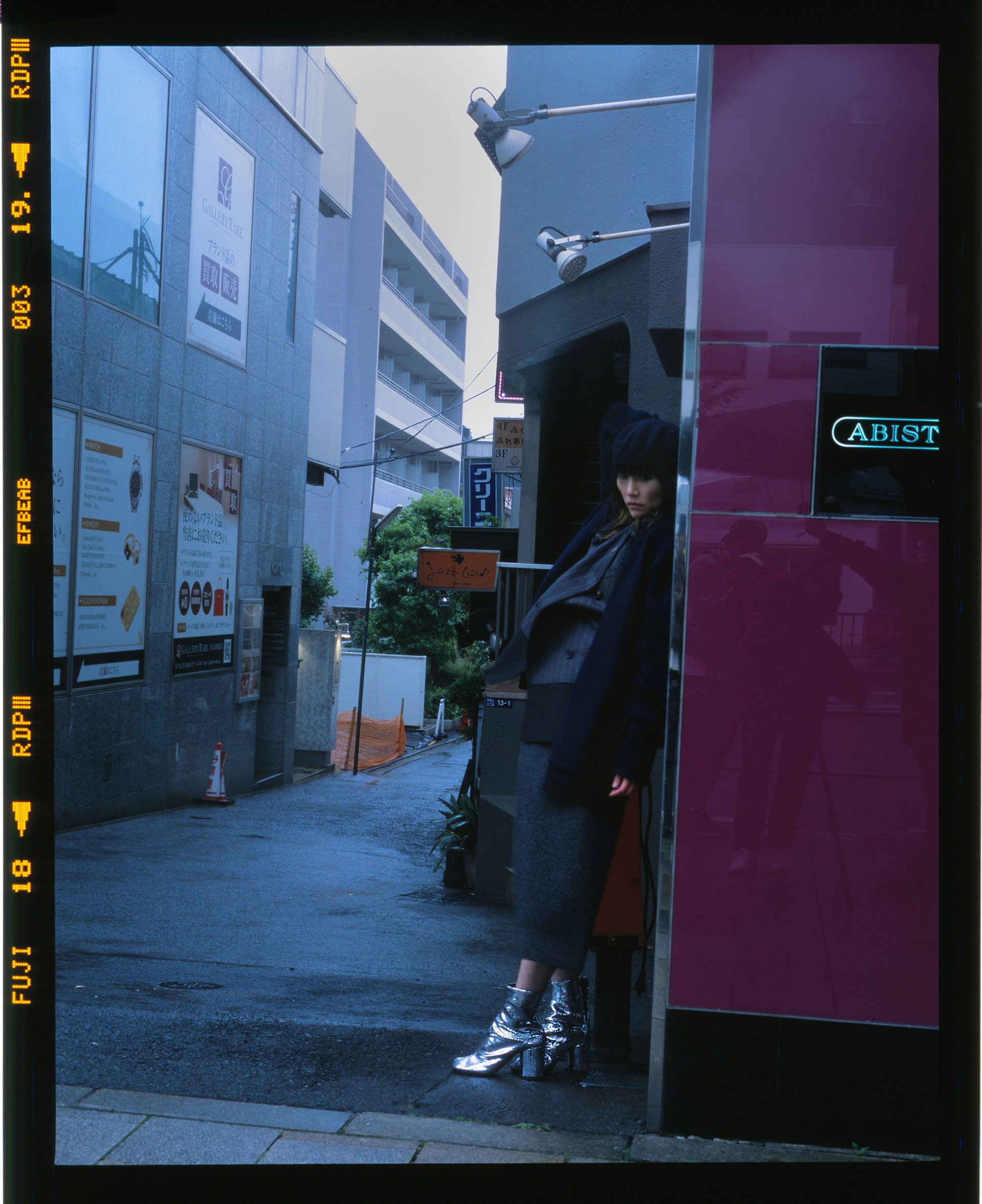 雨風が吹きつける早朝、撮影はスタートした。カメラの前に立つのは振り幅の広い演技で国内外問わず活躍する、女優・菊地凛子。笑顔を絶やさず、ほがらかな撮影現場を作り出す彼女だが、シャッターが回ると一変。ミステリアスな目つきやポージングで、独特の存在感を発揮する。今回、彼女のスタイリングを担当したのはスタイリスト・北村道子。当時、菊地百合子で活動をしていた彼女を「凛子」という名に改名し、二人三脚で歩んだという北村が、数年ぶりに菊地のコーディネートを手がける。