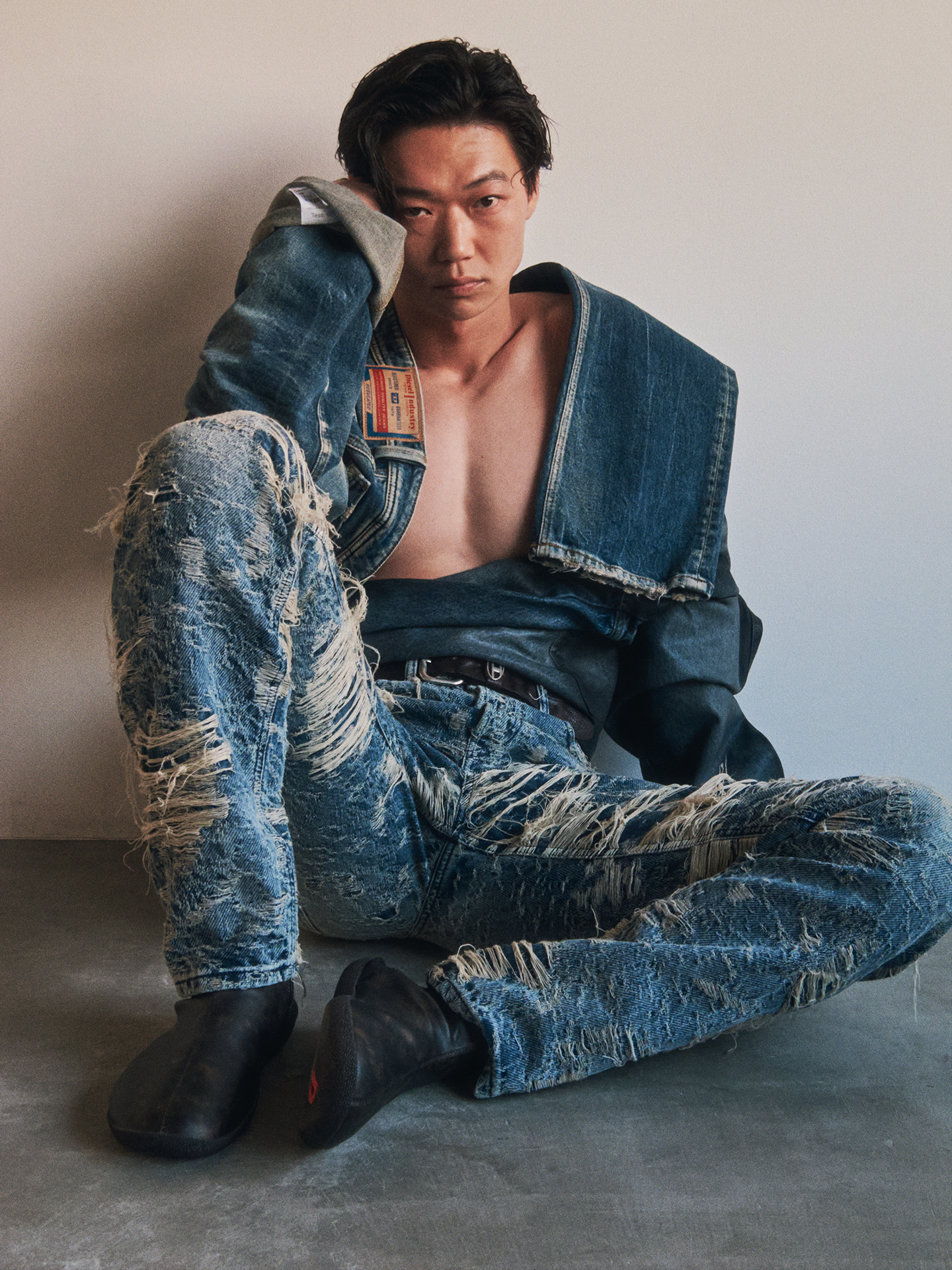 そんな DIESEL の最新コレクションを、退廃的かつ映画的な視点で再解釈。まとったのは、その繊細な演技力で観る者の心を揺さぶる俳優の笠松将。創造性に満ちた美しきアンチテーゼを体現する(最終回/全4回)。