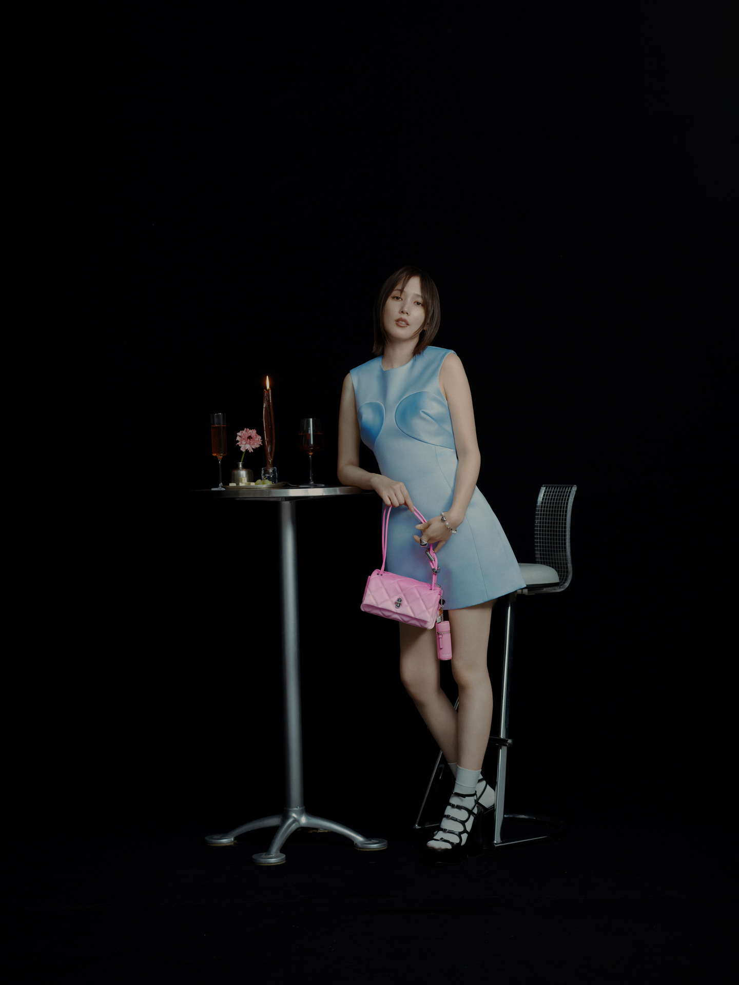 今回はピンクグラデーションカラーとは相反する、スカイブルーのサテンドレスをチョイス。ハードルが高そうに見えるが水々しいスカイブルーがピンクを引き立てており、さらにバスト部分のディテールがアイキャッチで、まるでフェアリーのような愛らしいスタイルが完成。艶やかなサテン生地なのでパーティやイベント時にピッタリなのはもちろん、ハイソックスと合わせてデイリーに楽しむことも。またシームポケットが付いているなど実用性にもこだわったデザインであるのもポイント。物語を想像しながらスペシャルな一着を着こなして。