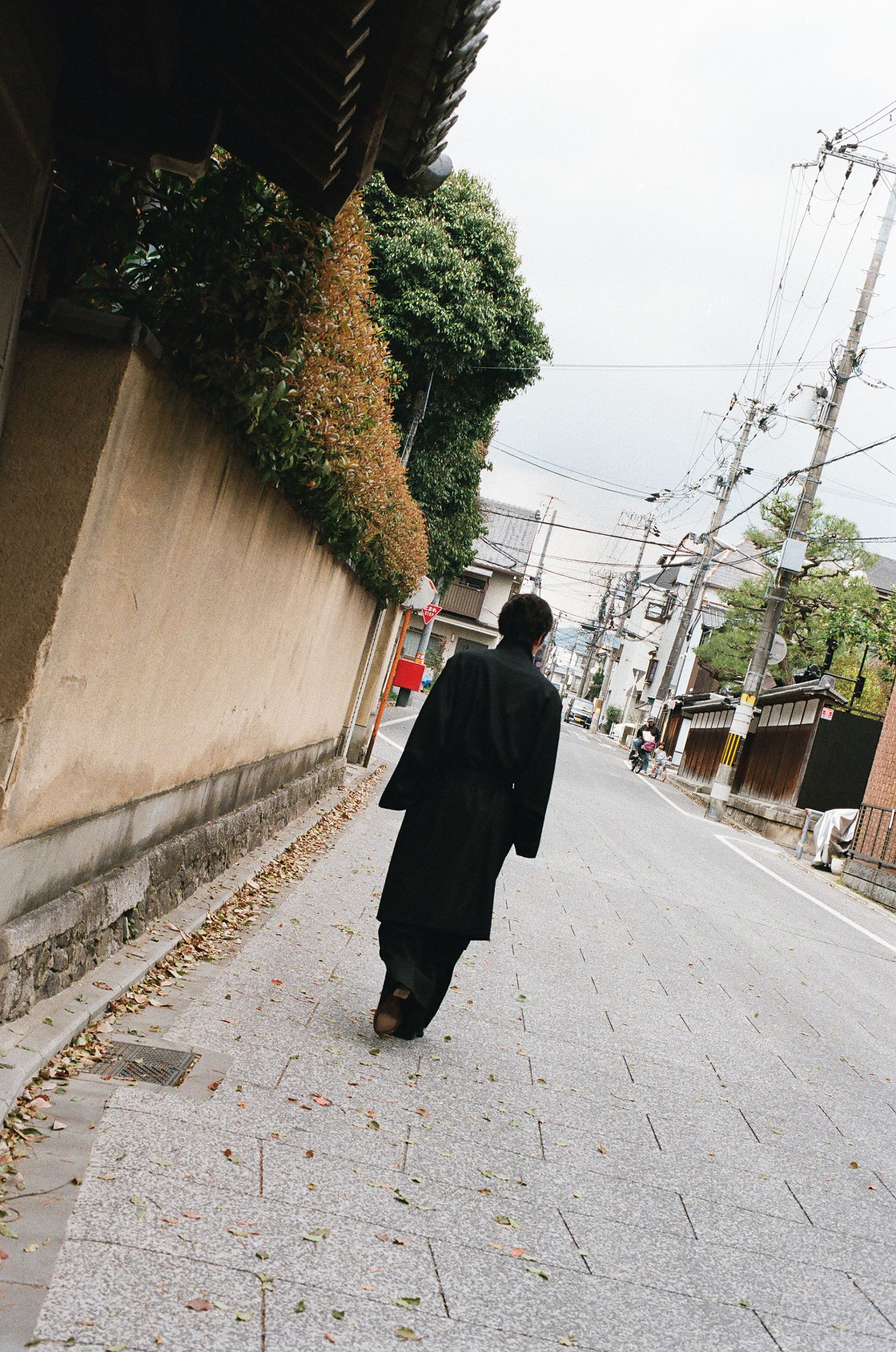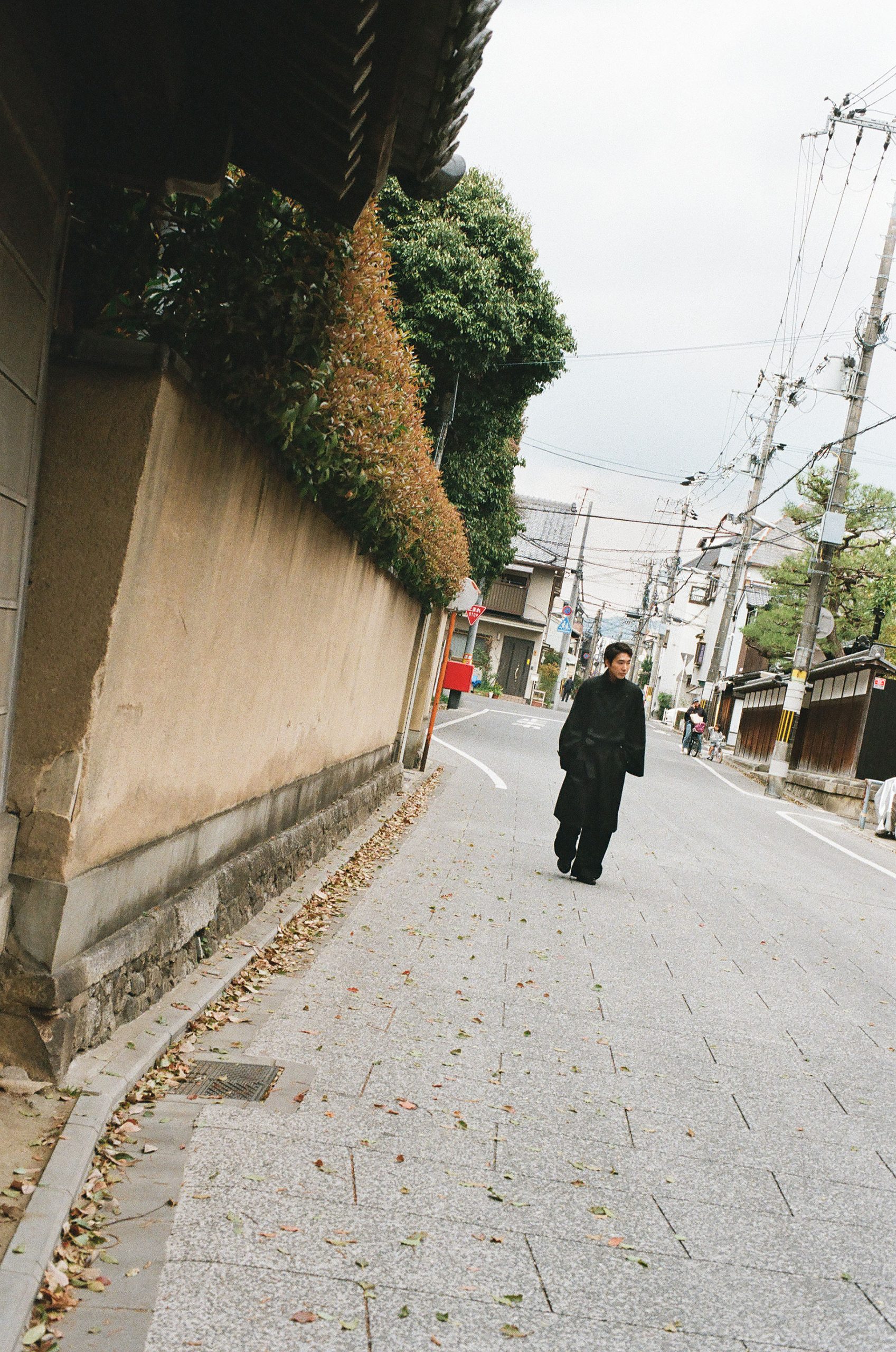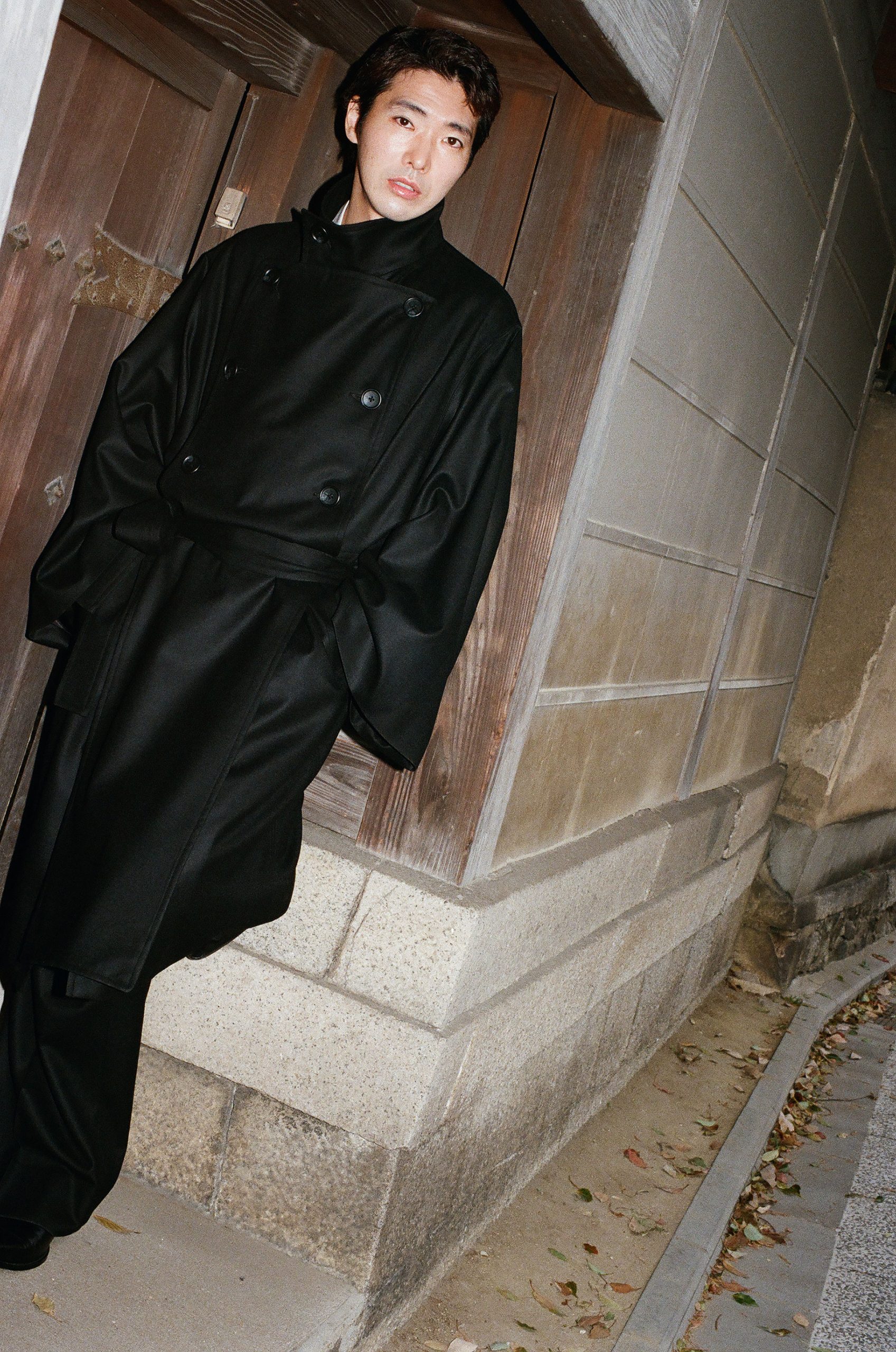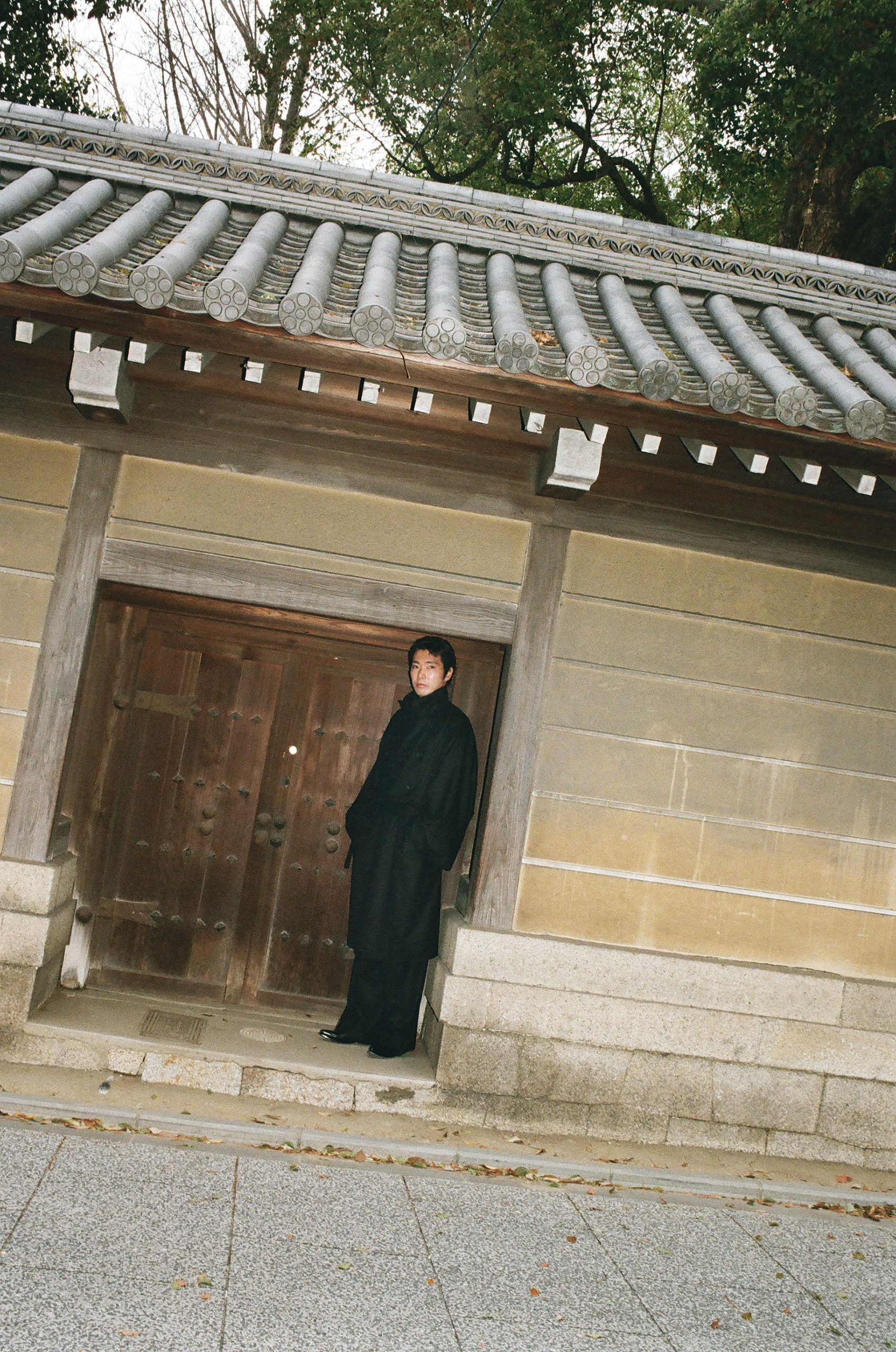 今回、柄本が纏うのは、京都を拠点とする RAINMAKER (レインメーカー) の2025年秋冬コレクション。RAINMAKER は、和の美学を出発点に、現代的なテクノロジーや異文化の要素を独自の視点で掛け合わせ、時代の空気に寄り添う服作りを続けている。今季は、ウェスタンのエッセンスとエレガンスを織り交ぜ、機能性と洗練が共存するスタイルを展開する。撮影を手がけたのは写真家・鈴木親。京都の光と影、その隙間に浮かぶ人物の呼吸をとらえるようにして、柄本佑とレインメーカーの交差点を静かに記録した。装いと空気、時間と記憶が、重なり合う瞬間をとらえた、ひとつの肖像(第3回/全5回)。
