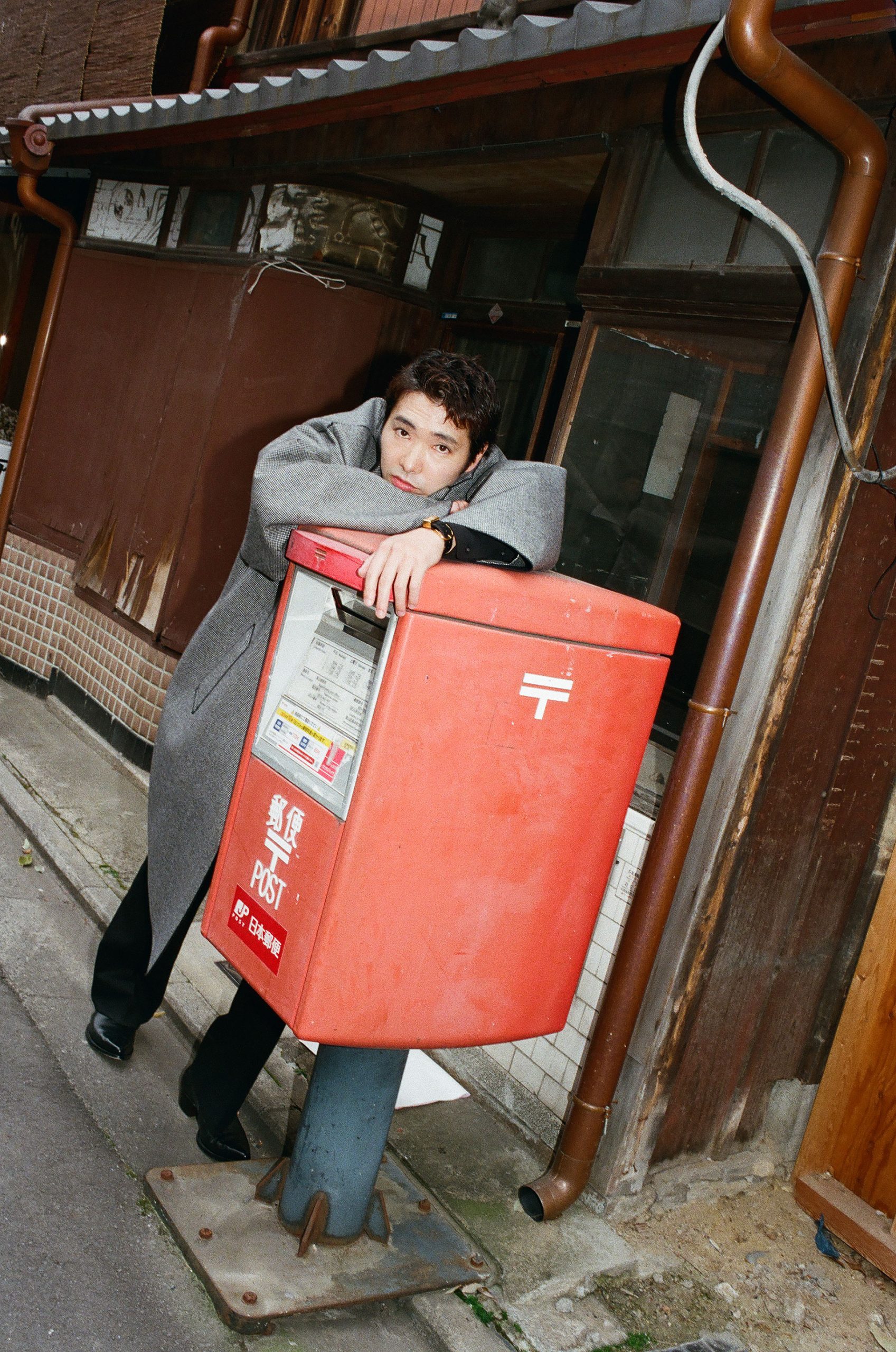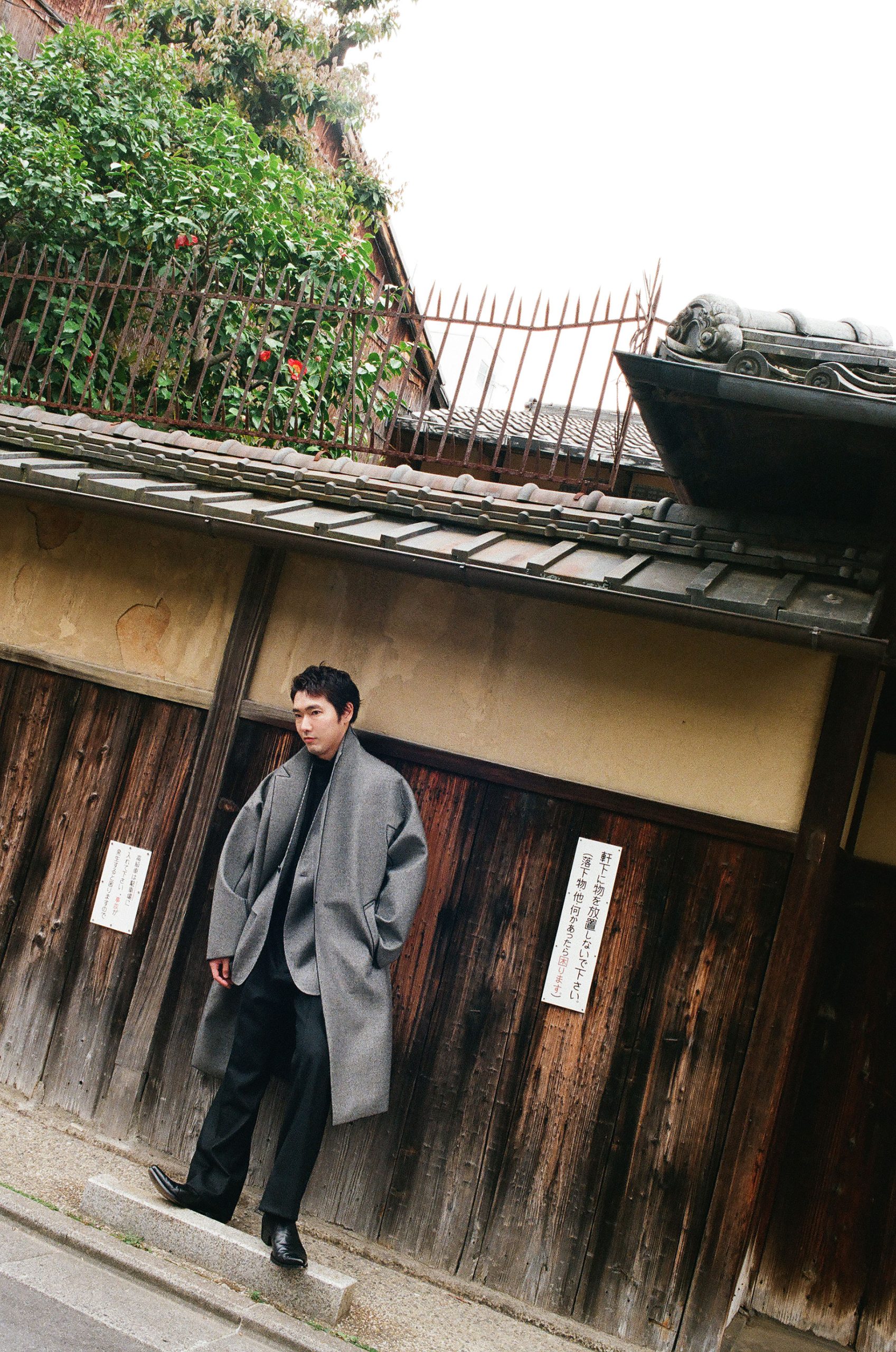 今回、柄本が纏うのは、京都を拠点とする RAINMAKER (レインメーカー) の2025年秋冬コレクション。RAINMAKER は、和の美学を出発点に、現代的なテクノロジーや異文化の要素を独自の視点で掛け合わせ、時代の空気に寄り添う服作りを続けている。今季は、ウェスタンのエッセンスとエレガンスを織り交ぜ、機能性と洗練が共存するスタイルを展開する。撮影を手がけたのは写真家・鈴木親。京都の光と影、その隙間に浮かぶ人物の呼吸をとらえるようにして、柄本佑とレインメーカーの交差点を静かに記録した。装いと空気、時間と記憶が、重なり合う瞬間をとらえた、ひとつの肖像(第1回/全5回)。