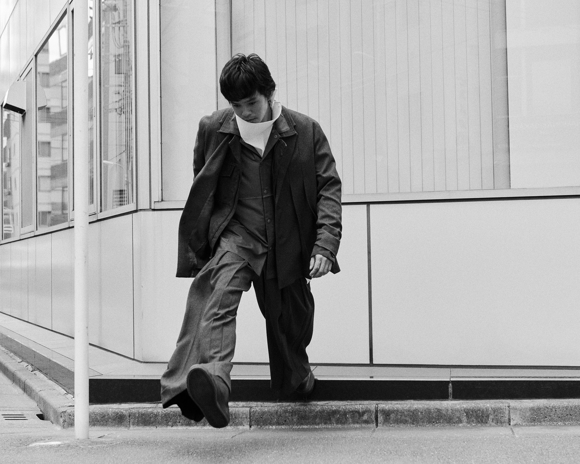 池松壮亮という俳優は、その “語らない強さ” を自然体のまま証明するような存在だ。役を演じるというより、その人物として呼吸をしているように映る。撮影当日も、カメラの前で、ただそこに在るという佇まいだけで、景色の意味を塗り替えてしまうような不思議な魅力があった。彼の歩幅や肩の傾きひとつが、服の表情を静かに変化させる。凛とした静けさを纏う池松壮亮の姿と、IM MEN の余白の美学が、都市の中でそっと交差する (最終回/全4回)。