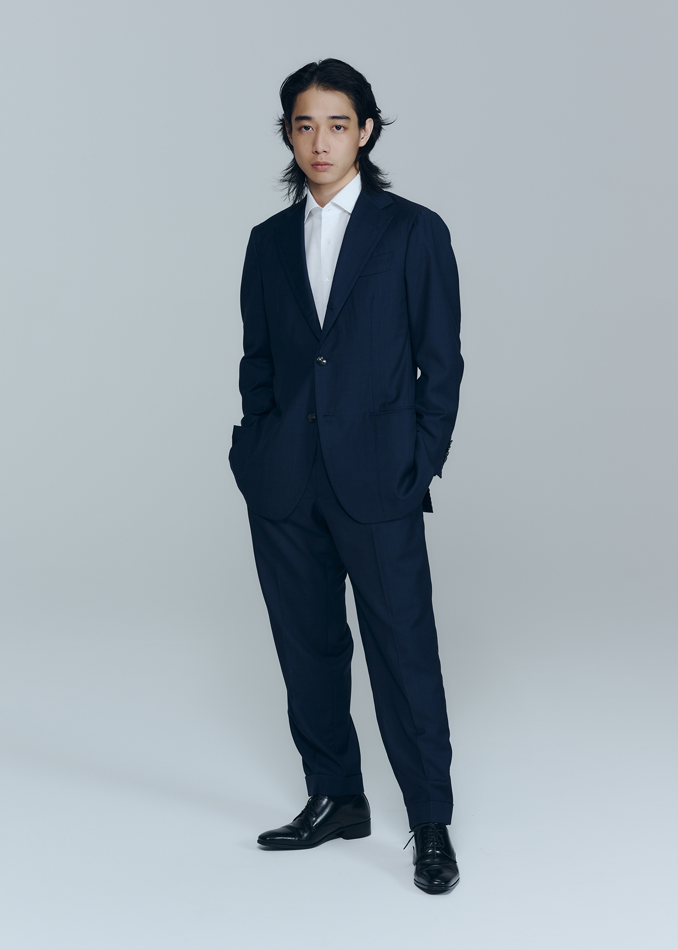 20代を折り返した片岡にとって特別な一着。袖を通した片岡からは、粋な大人の柔らかさも感じられる。