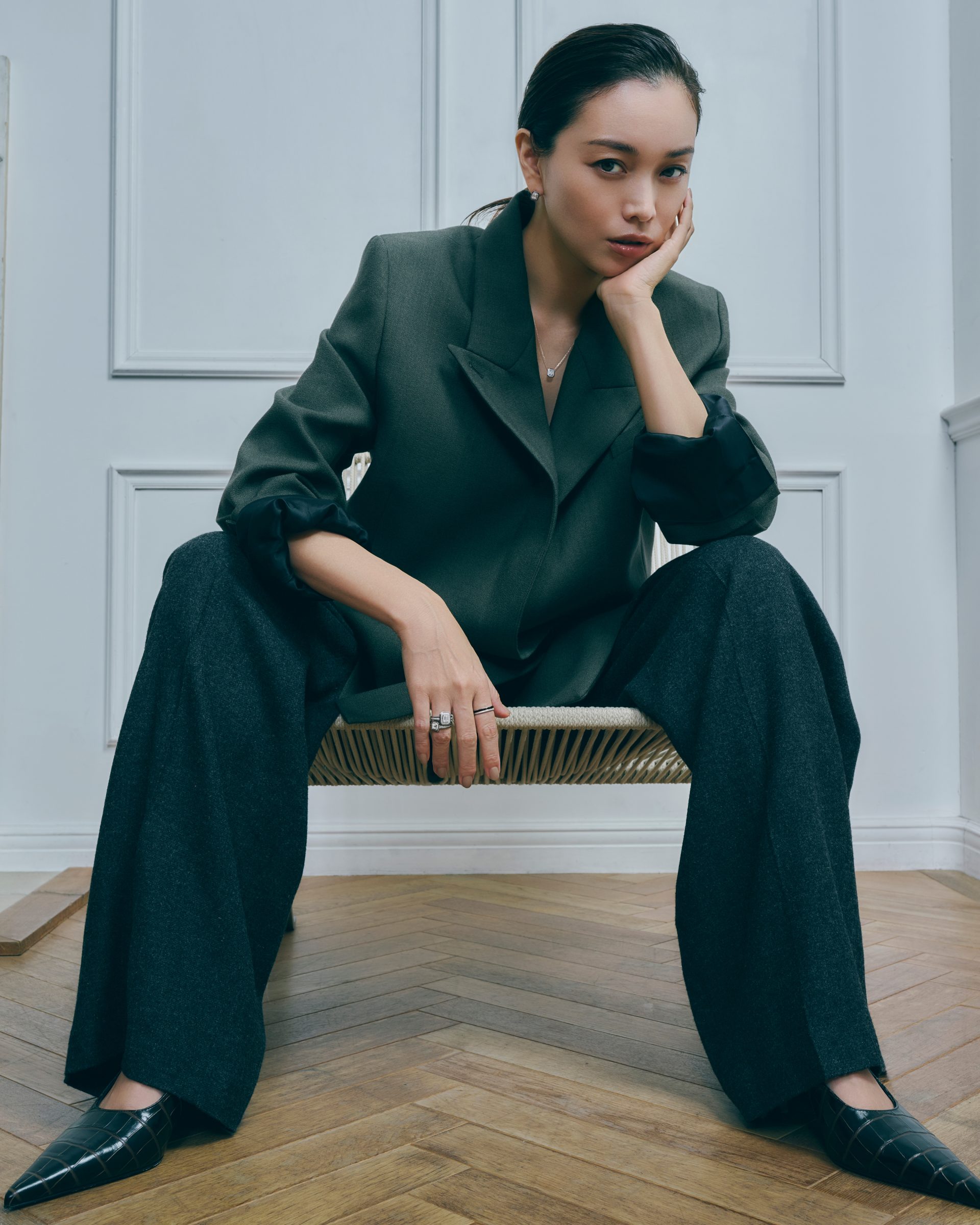 メゾンを代表するアイコンジュエリーを纏うのは、モデルの蛯原友里。20代から第一線で活躍し続ける彼女は、いつの時代も輝きを放ち、しなやかに美を更新する存在。それぞれの個性的なジュエリーと奏でる姿は、時代を越えて愛される女性像を鮮やかに体現する。 (最終回/全3回)