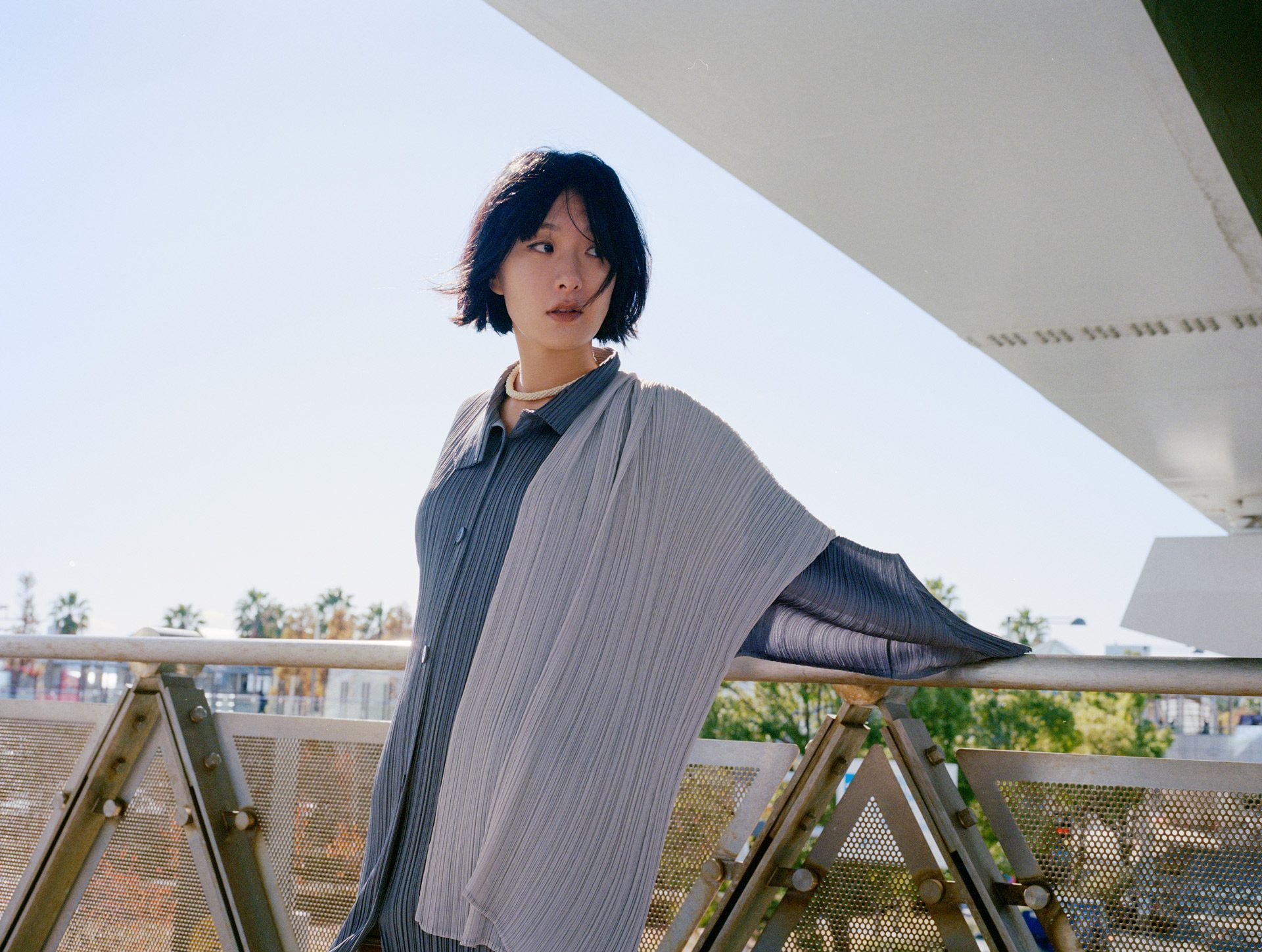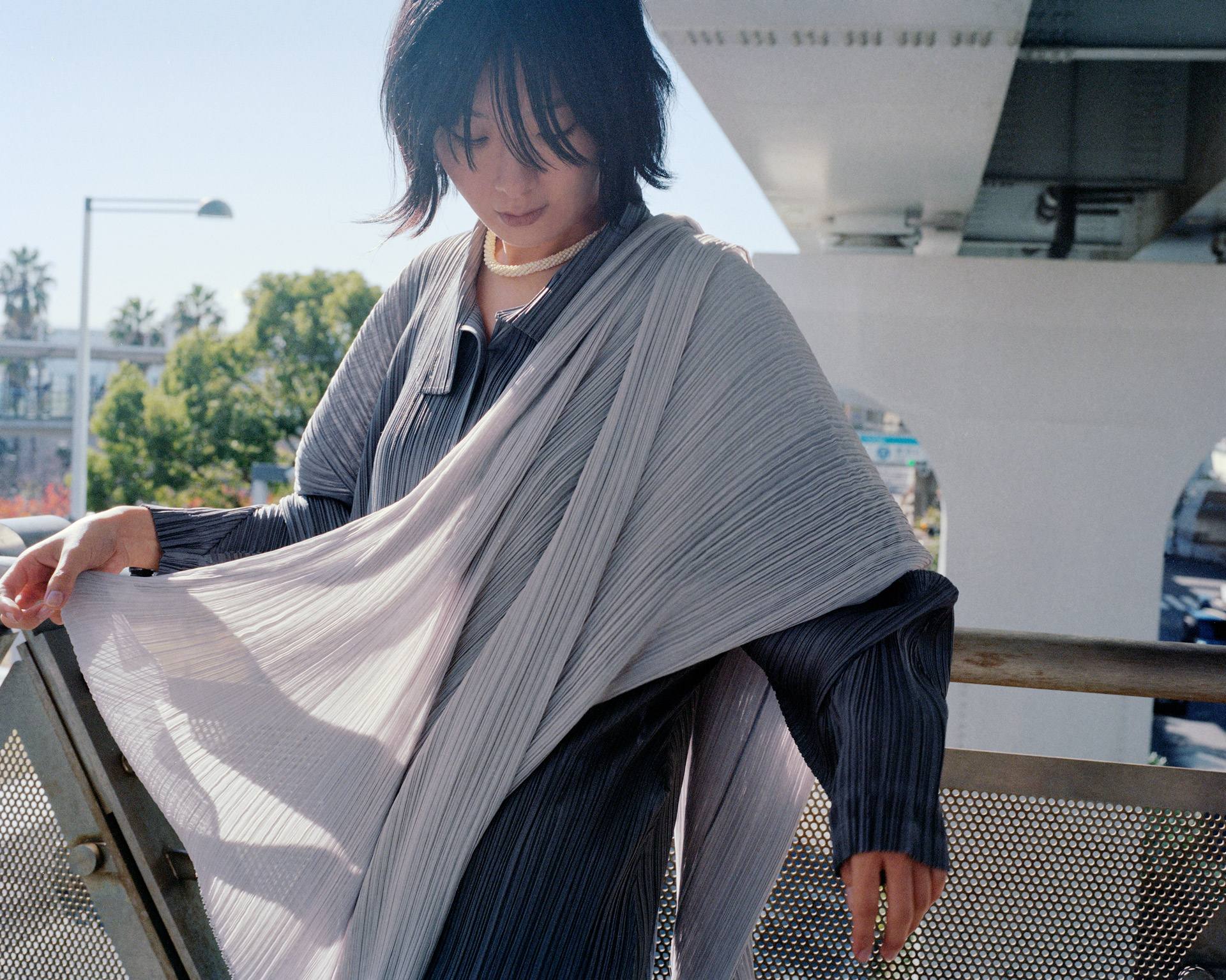 都市にひそむ、思いがけない瞬間。玄理が纏うプリーツ プリーズ イッセイ ミヤケ vol.4