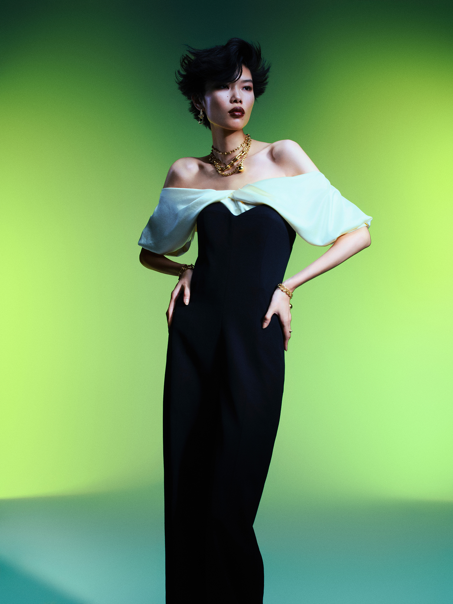 Kayako が体現する、モダン・ファムファタール。デイ & ナイトはゴールドジュエリーとともに 【TFP Jewelry】
