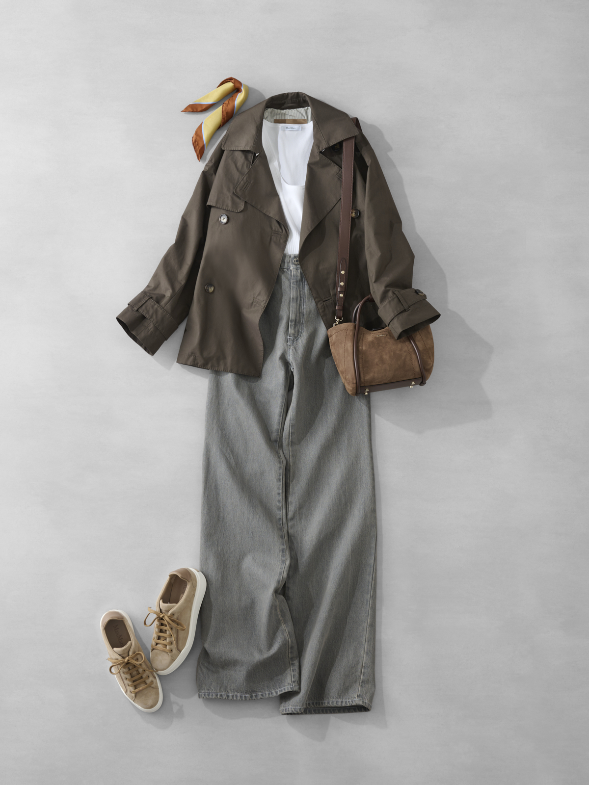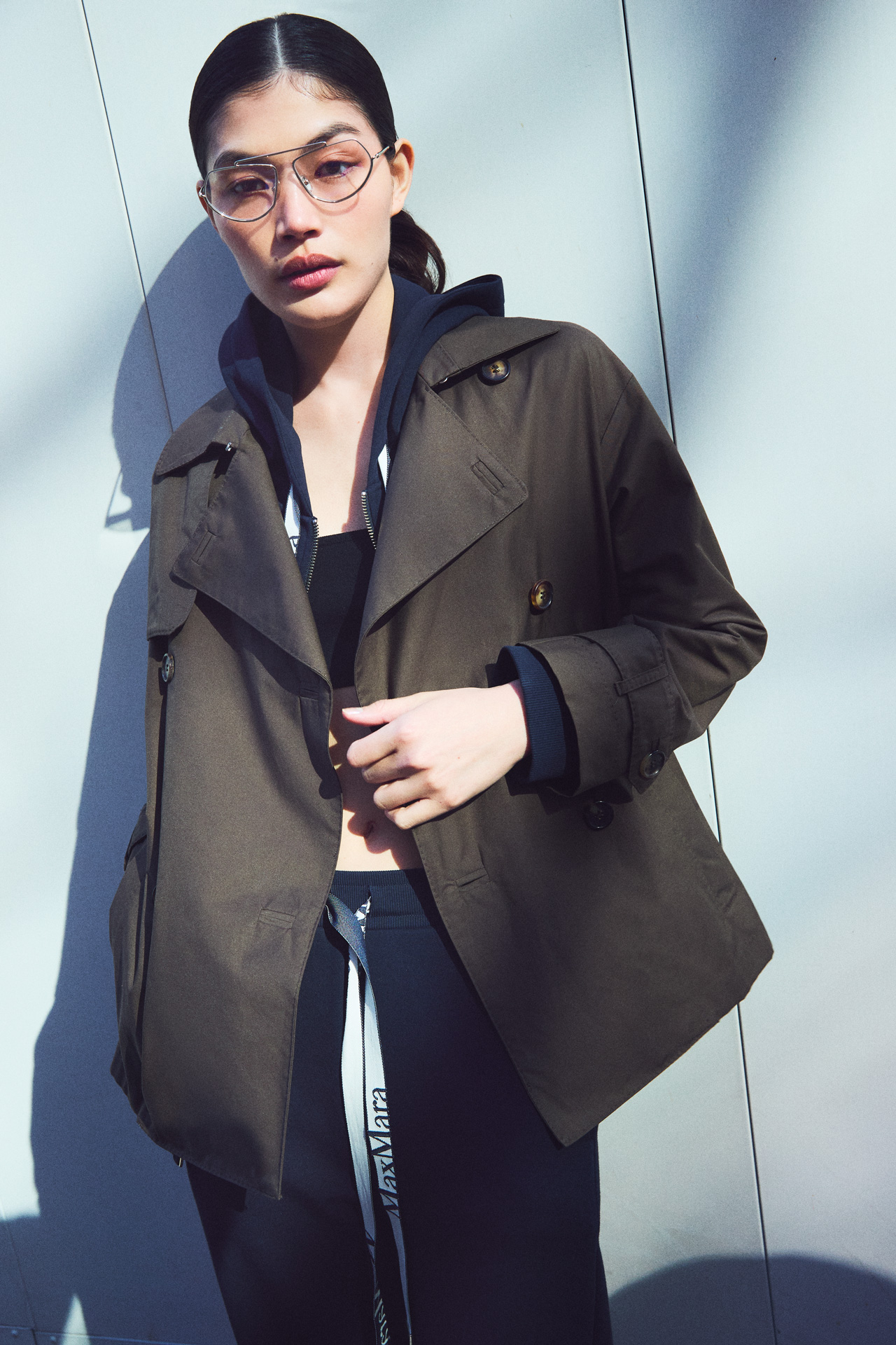 トレンチコートを主役に据え、Max Mara (マックスマーラ)、Sportmax (スポーツマックス) と ’S Max Mara (エス マックスマーラ) を自由にミックスすることで、一枚のアウターでも多彩な表情を引き出す。モデルの福士リナが纏い、レイヤードによって印象を塗り替え、トレンチコートの奥深さを伝える。