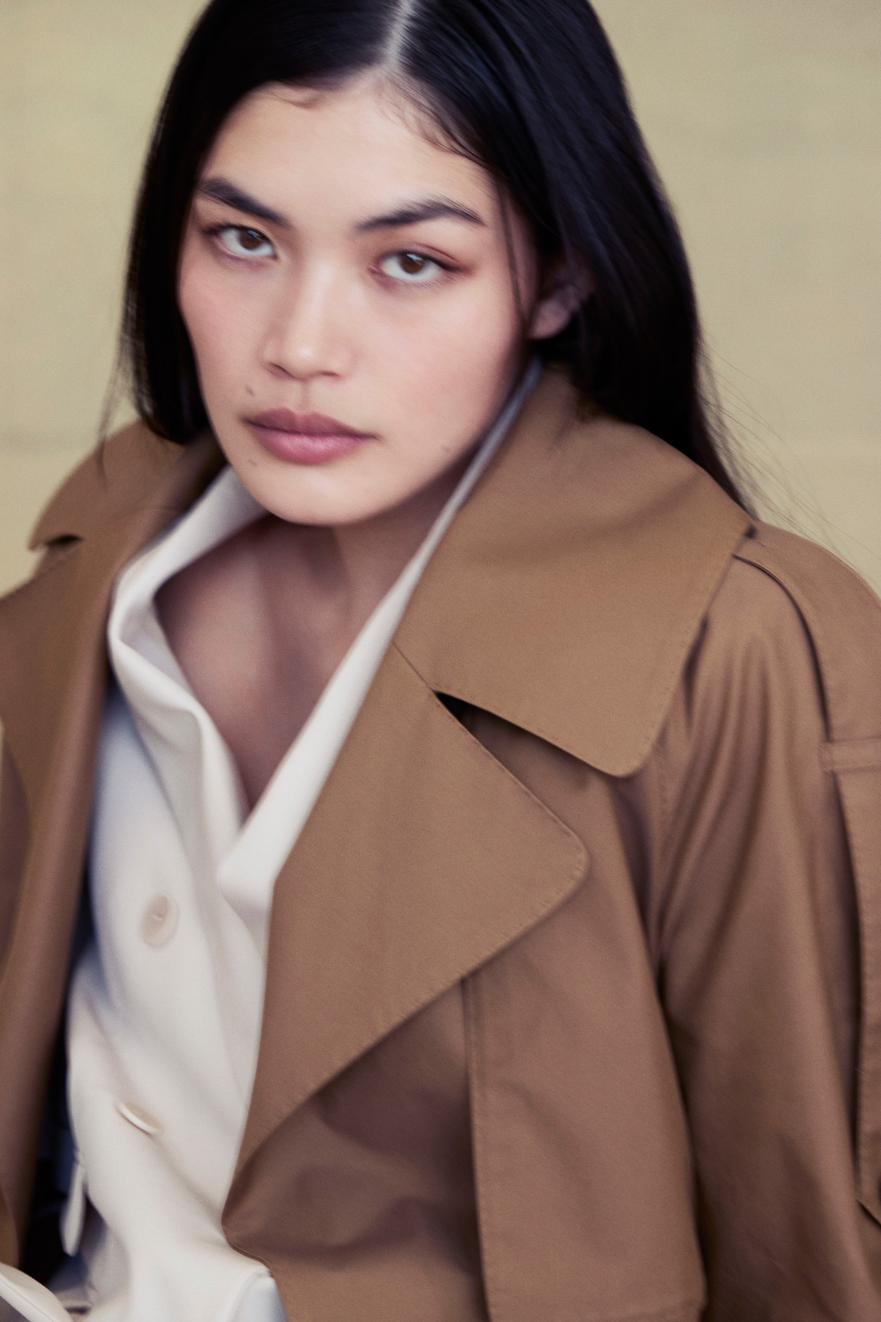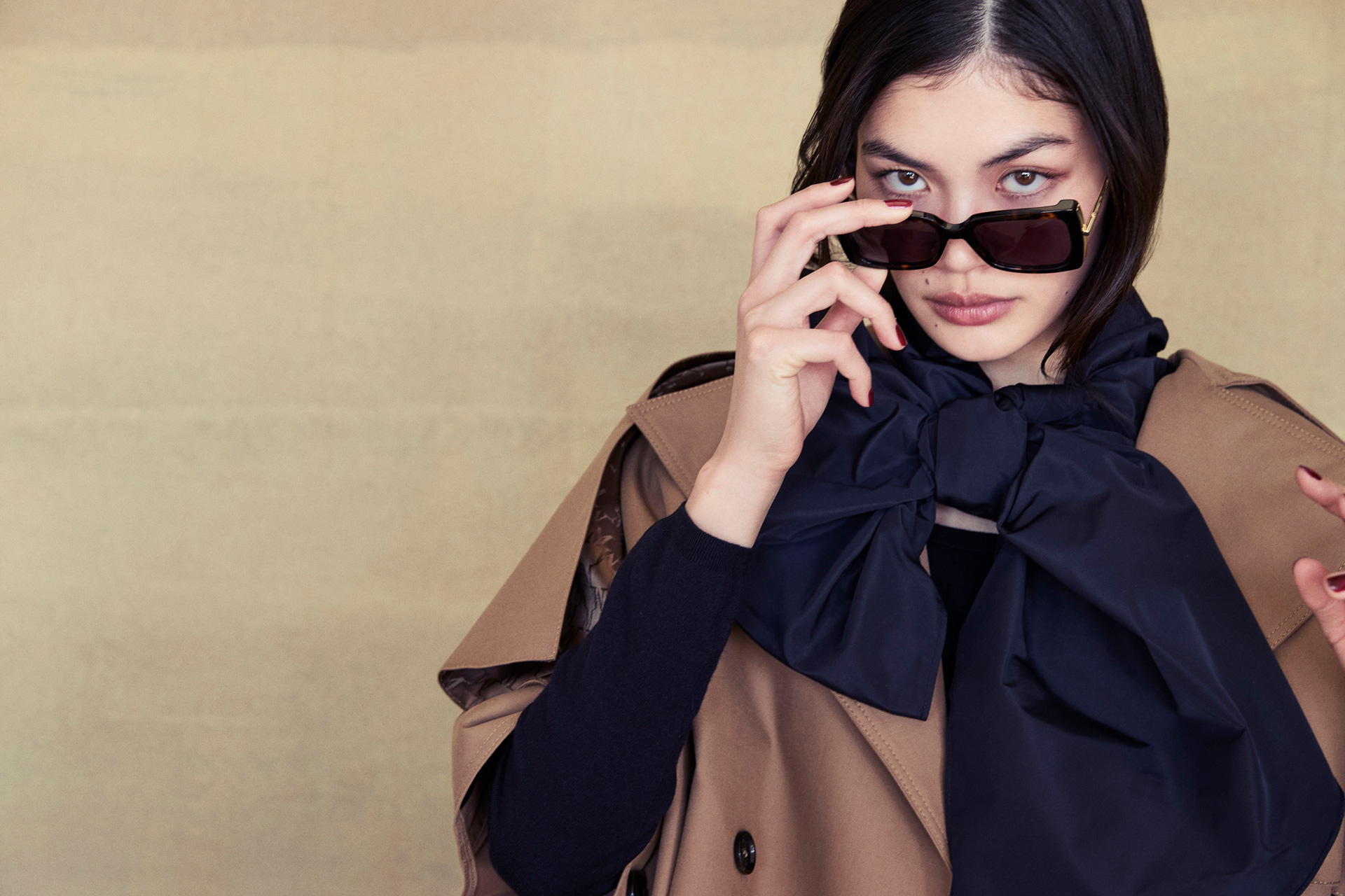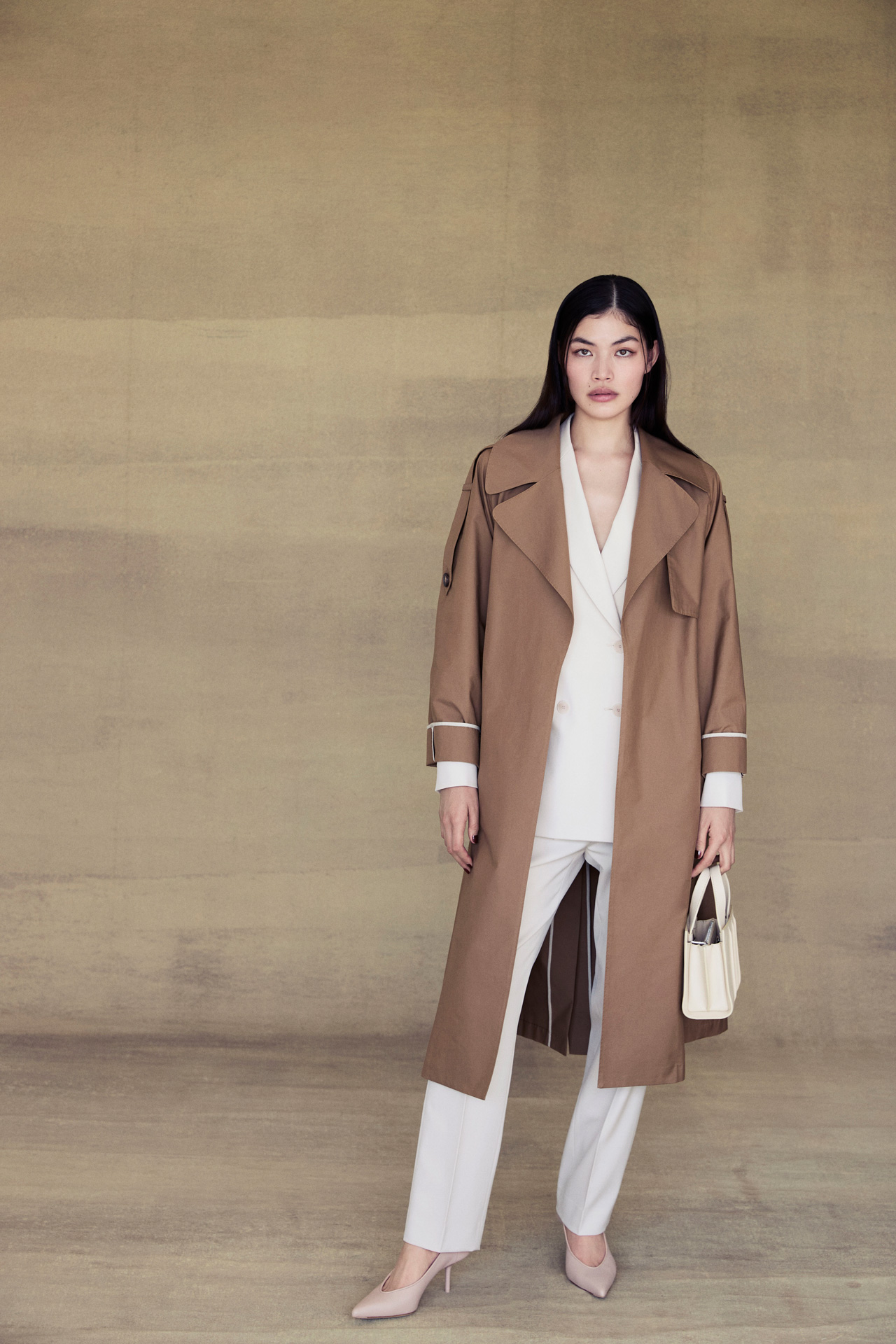 トレンチコートを主役に据え、Max Mara (マックスマーラ)、Sportmax (スポーツマックス) と ’S Max Mara (エス マックスマーラ) を自由にミックスすることで、一枚のアウターでも多彩な表情を引き出す。モデルの福士リナが纏い、レイヤードによって印象を塗り替え、トレンチコートの奥深さを伝える。