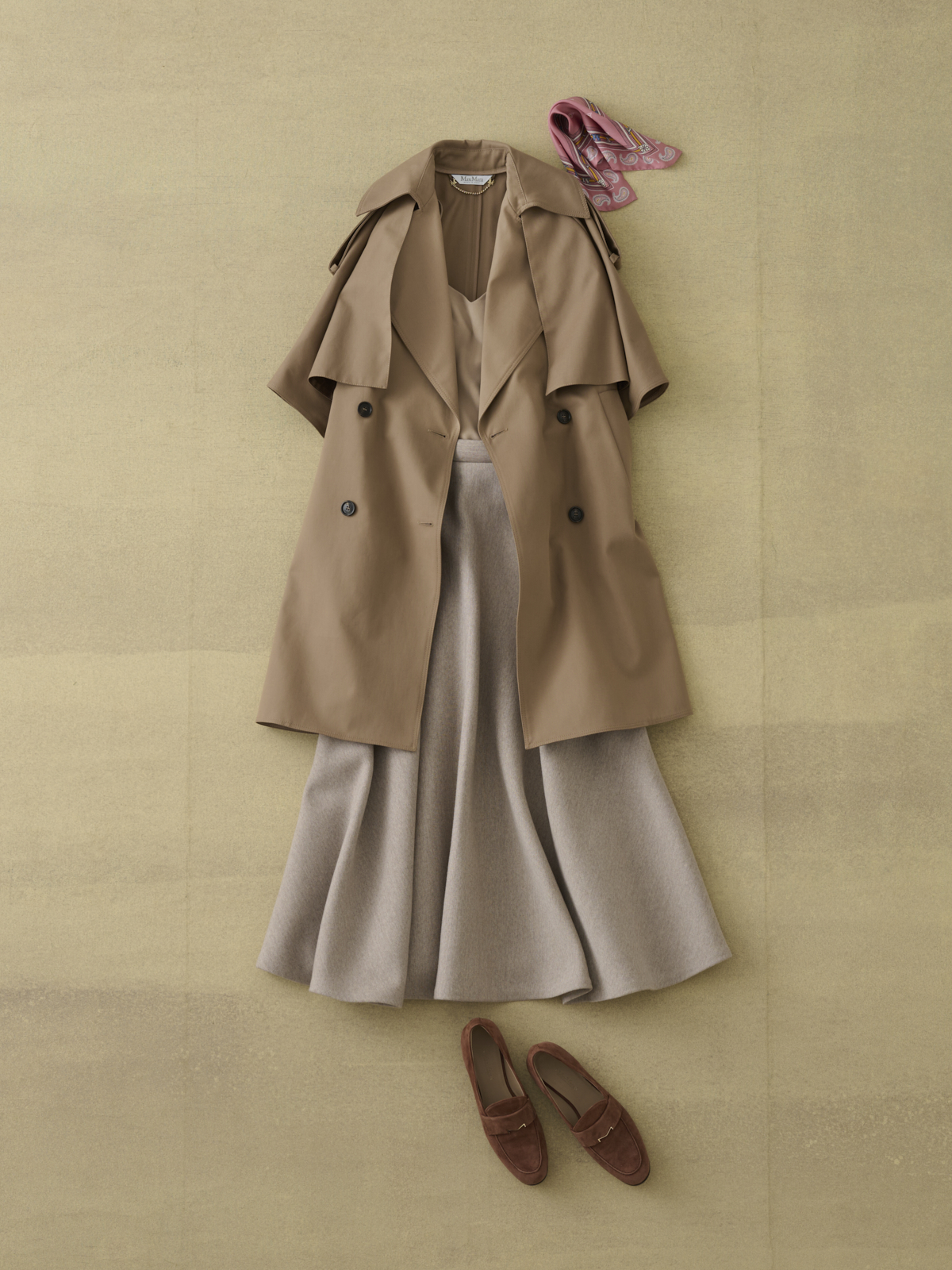 少しだけきちんと見せたい日。装飾に頼らない品のあるバランスが心地よい。日常にもなじむ視点で再構成した「Modern Classic」をテーマに、Max Mara のトレンチコートがもたらす品格に目を向ける。スタイリングを手がけたのは、百々千晴。フォーマルでありながら今の気分にもフィットする。