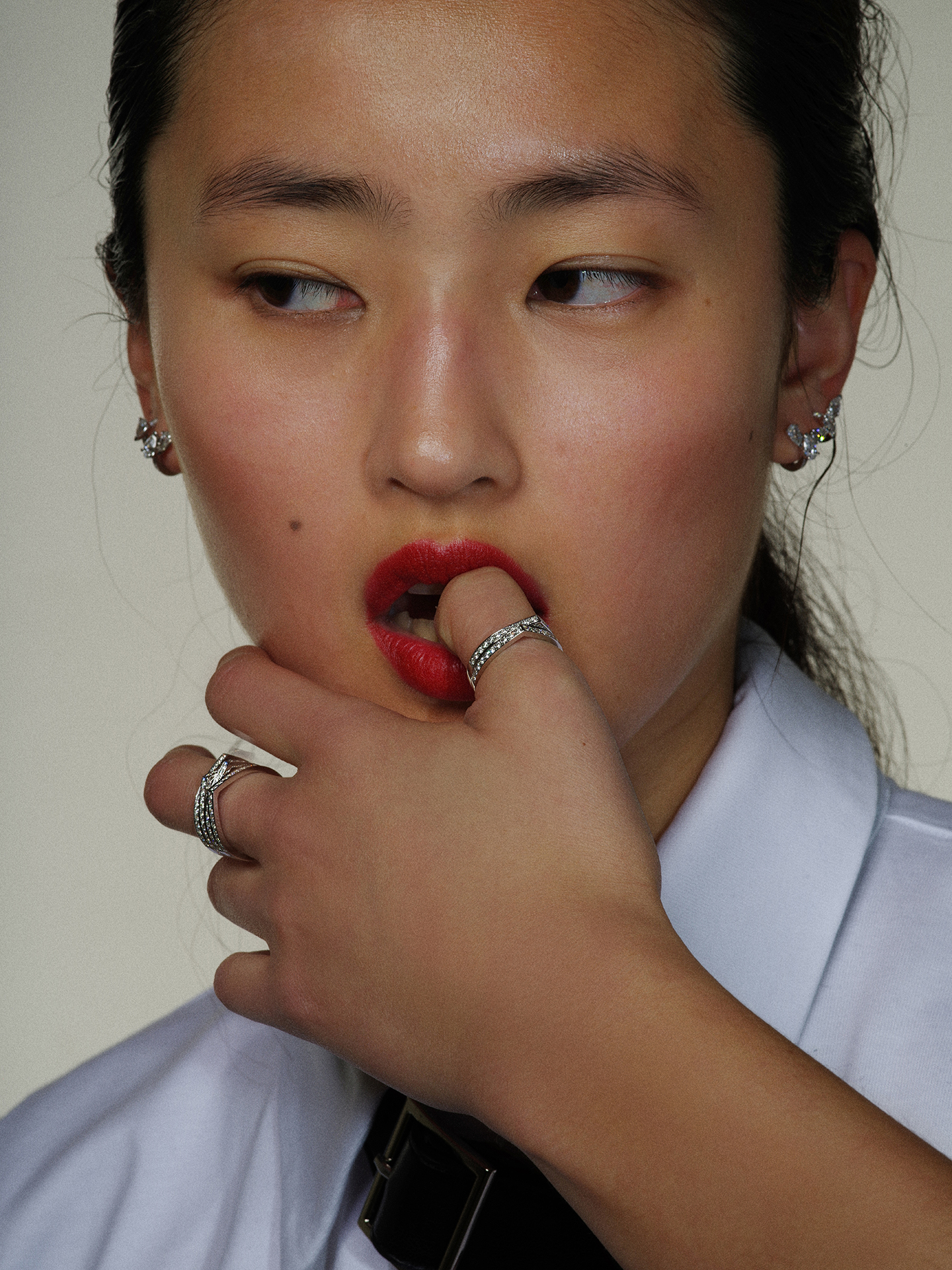 ジュエリーをまとうということは、ただ着飾るためというだけに収まらない。美しい宝石の輝きで、自身を慈しむこと。大切な思い出を、ひとときも忘れることがないよう留めること。自身のこれまでの実績を目にみえる形で賞賛するということ。試練に立ち向かう自分を奮い立たせること。そして何より、自身のファッションスタイル、もといフィロソフィーを表現するということだ。 The Fashion Post の新連載「TFP Jewelry」では、ジュエリーとファッションのモダンな関係性をビジュアルとともにマンスリーで綴る。今回フィーチャーするのは、ドイツ・ベルリンを拠点にするモデル親子の Akari Higashi と日登美。マニッシュな感性でモダンにアップデートしたストリートスタイルに、ダイヤモンドやカラーストーンのジュエリーがアクセントを添える。