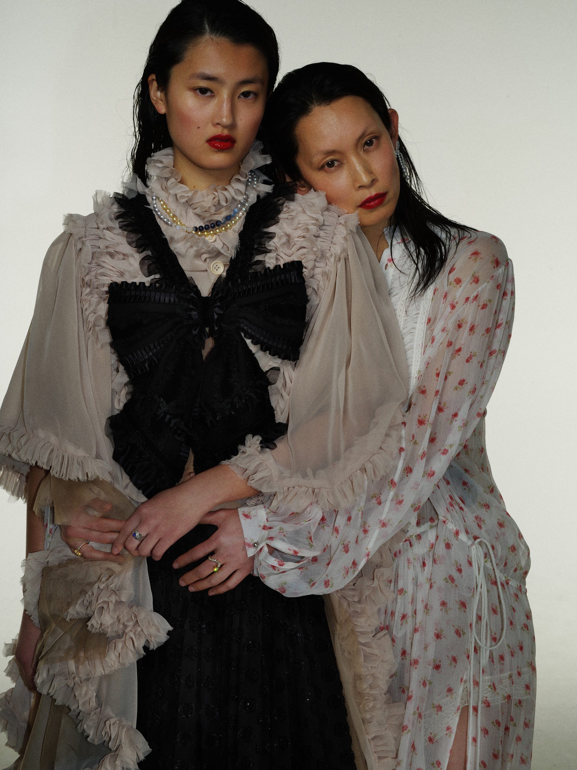 ジュエリーをまとうということは、ただ着飾るためというだけに収まらない。美しい宝石の輝きで、自身を慈しむこと。大切な思い出を、ひとときも忘れることがないよう留めること。自身のこれまでの実績を目にみえる形で賞賛するということ。試練に立ち向かう自分を奮い立たせること。そして何より、自身のファッションスタイル、もといフィロソフィーを表現するということだ。 The Fashion Post の新連載「TFP Jewelry」では、ジュエリーとファッションのモダンな関係性をビジュアルとともにマンスリーで綴る。今回フィーチャーするのは、ドイツ・ベルリンを拠点にするモデル親子の日登美と Akari Higashi。ラッフルやシフォンに彩られたロマンティックなドレスに、個性的なパールジュエリーがモードなひねりを効かせて。