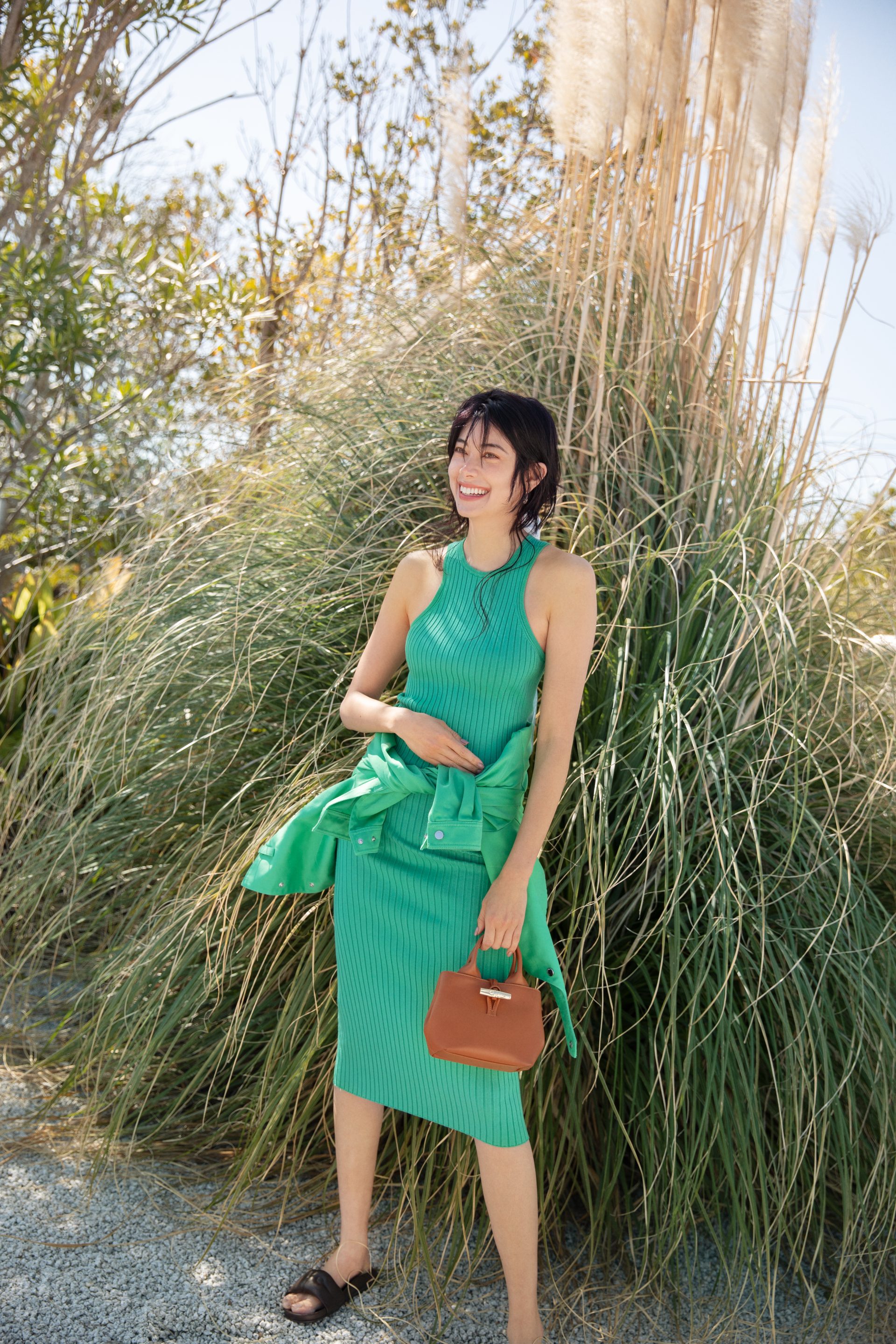 日常を飛び出し、太陽の日差しを浴びて砂の上を駆け抜ける。そんな自由を謳歌する女性を、熟練した職人のサヴォアフェールを宿した新作レザーバッグコレクションがエレガントに引き立てていく。LONGCHAMP が描く夏を体現するのは、ポジティブなエナジーで周囲を照らす太陽のようなミューズ、森星。LONGCHAMP の美学と重なりあう彼女と迎える、自由で眩い夏のひととき。