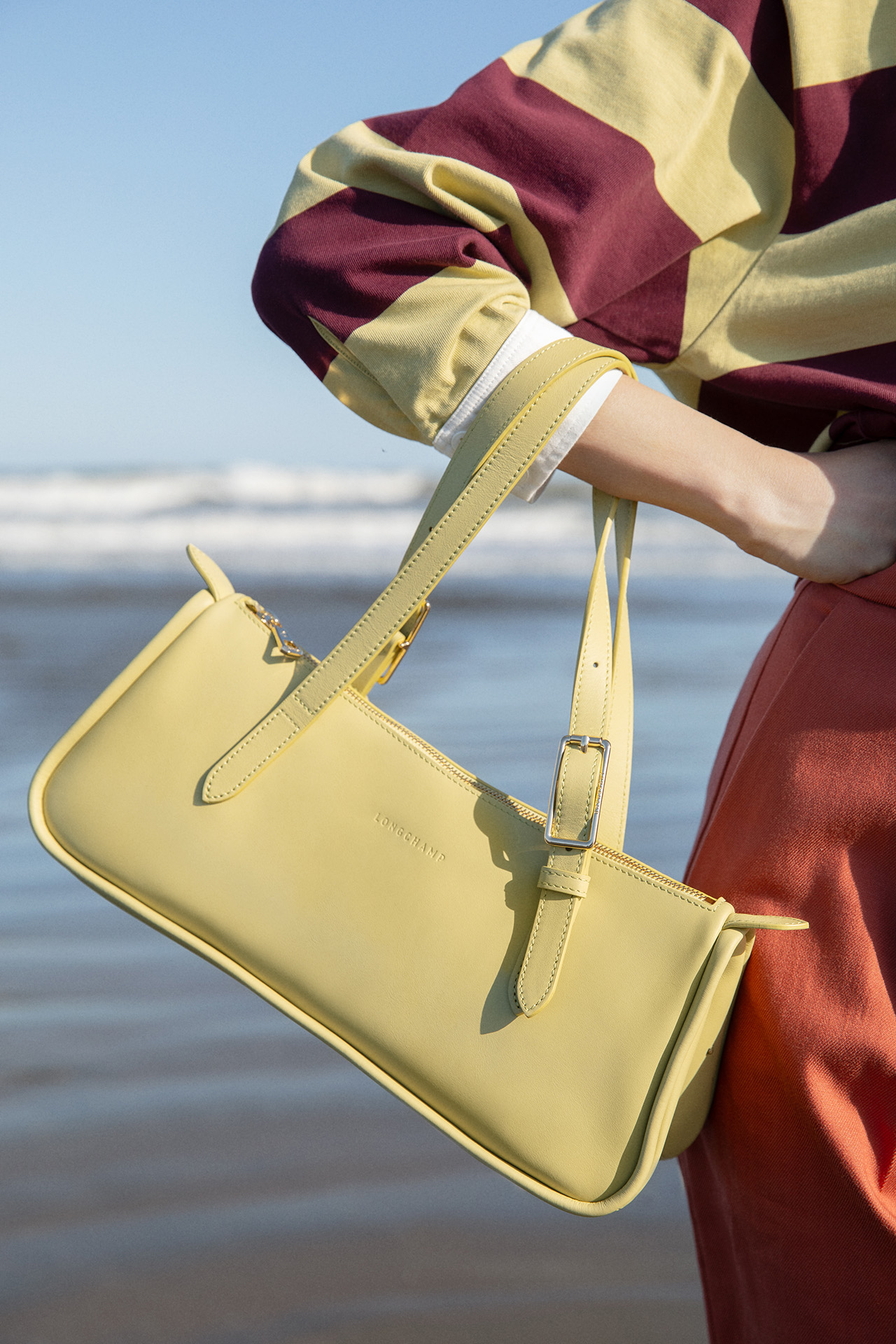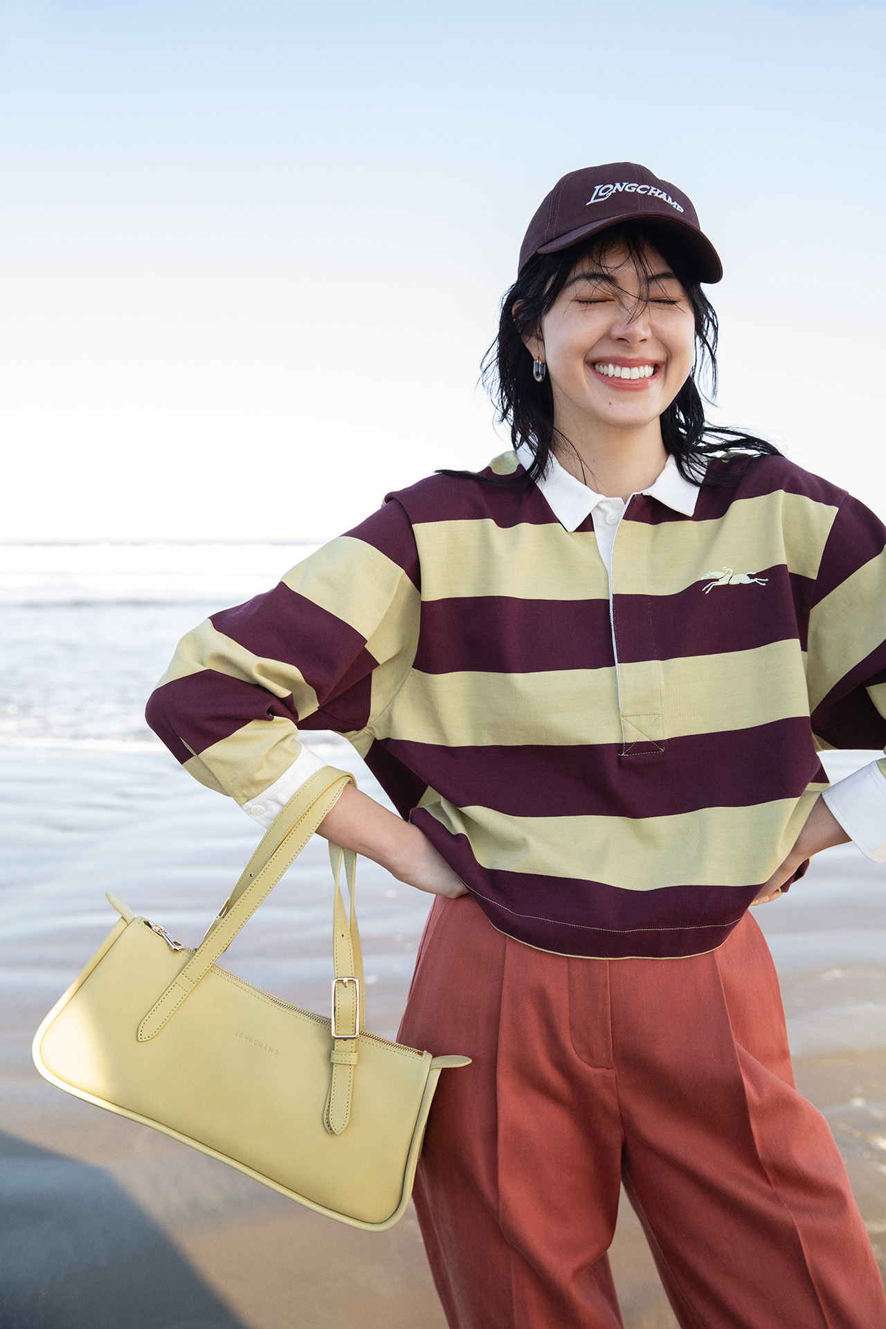 日常を飛び出し、太陽の日差しを浴びて砂の上を駆け抜ける。そんな自由を謳歌する女性を、熟練した職人のサヴォアフェールを宿した新作レザーバッグコレクションがエレガントに引き立てていく。LONGCHAMP が描く夏を体現するのは、ポジティブなエナジーで周囲を照らす太陽のようなミューズ、森星。LONGCHAMP の美学と重なりあう彼女と迎える、自由で眩い夏のひととき。
