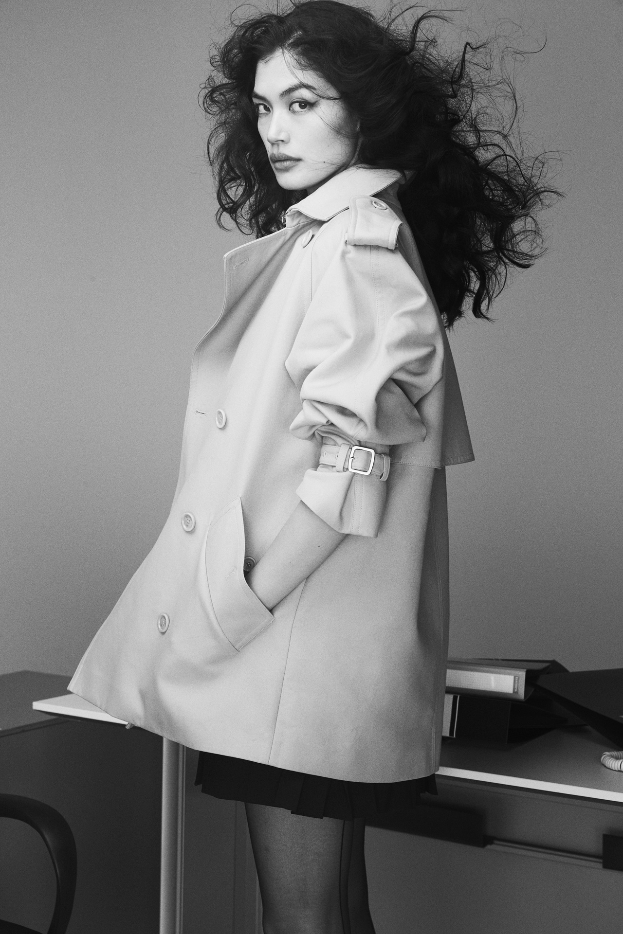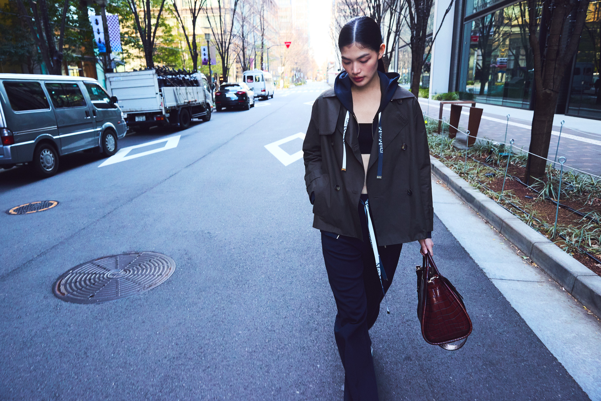 都市を軽やかに行き交う一日。仕事とプライベートを自在に行き来する感覚を「Urban Motion」に重ね、Max Mara のトレンチコートが持つ機能性と洗練にフォーカス。スタイリングを手がけたのは、百々千晴。構えすぎない抜け感と引き締まったシルエットの対比が、都会的な空気をまとった女性像を描く。