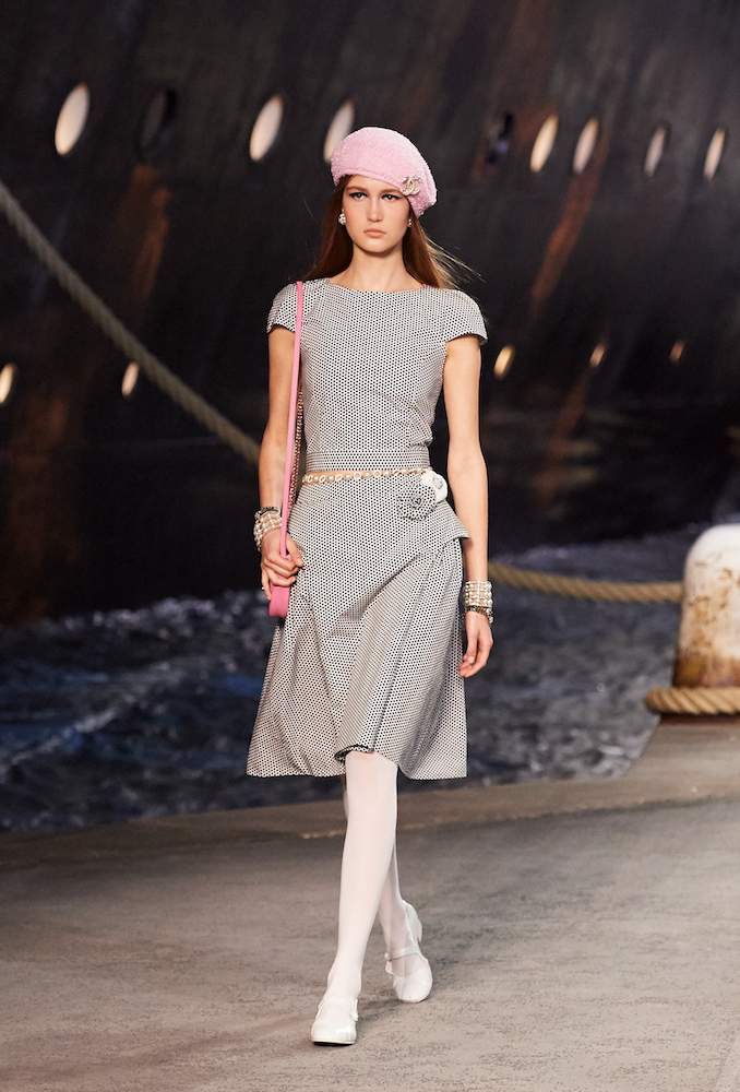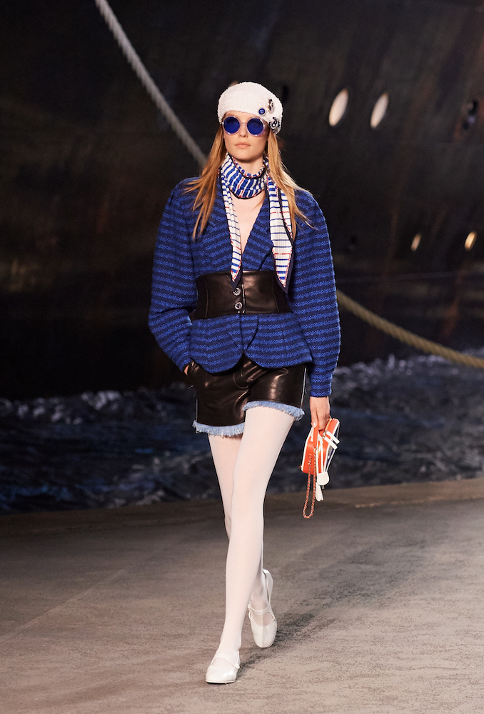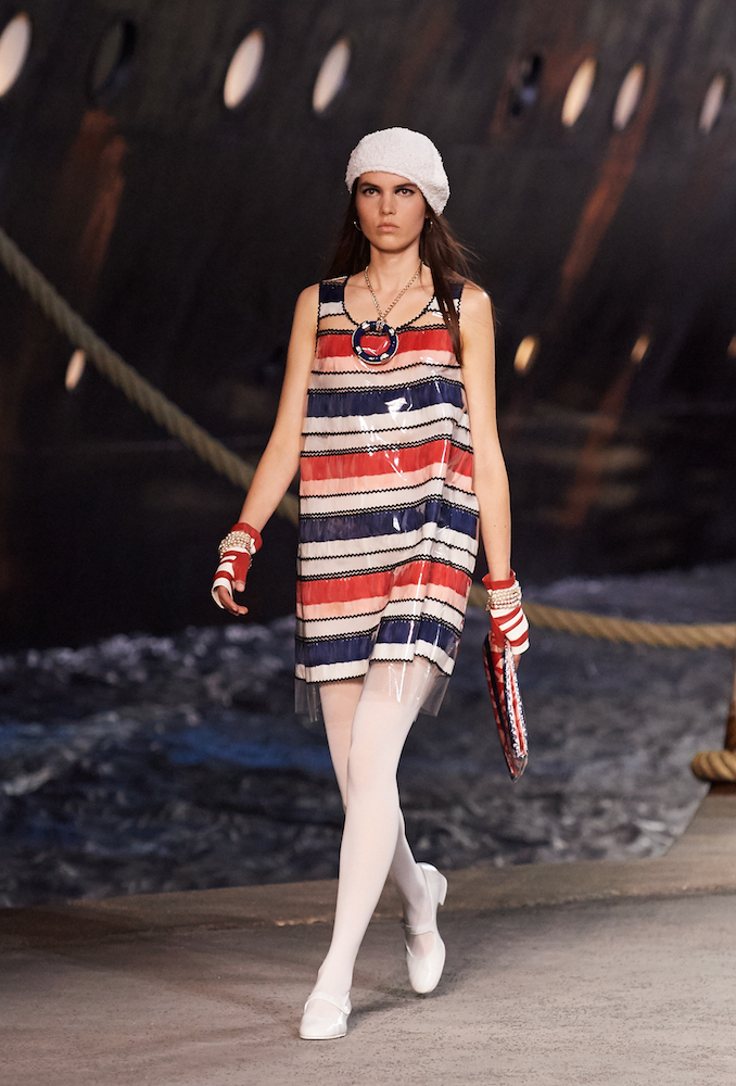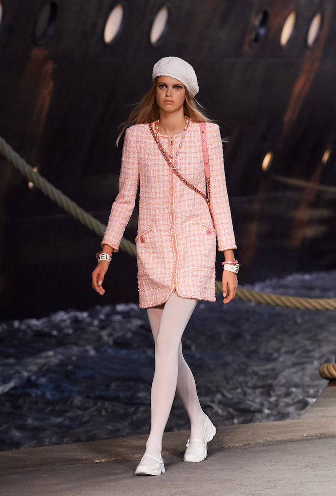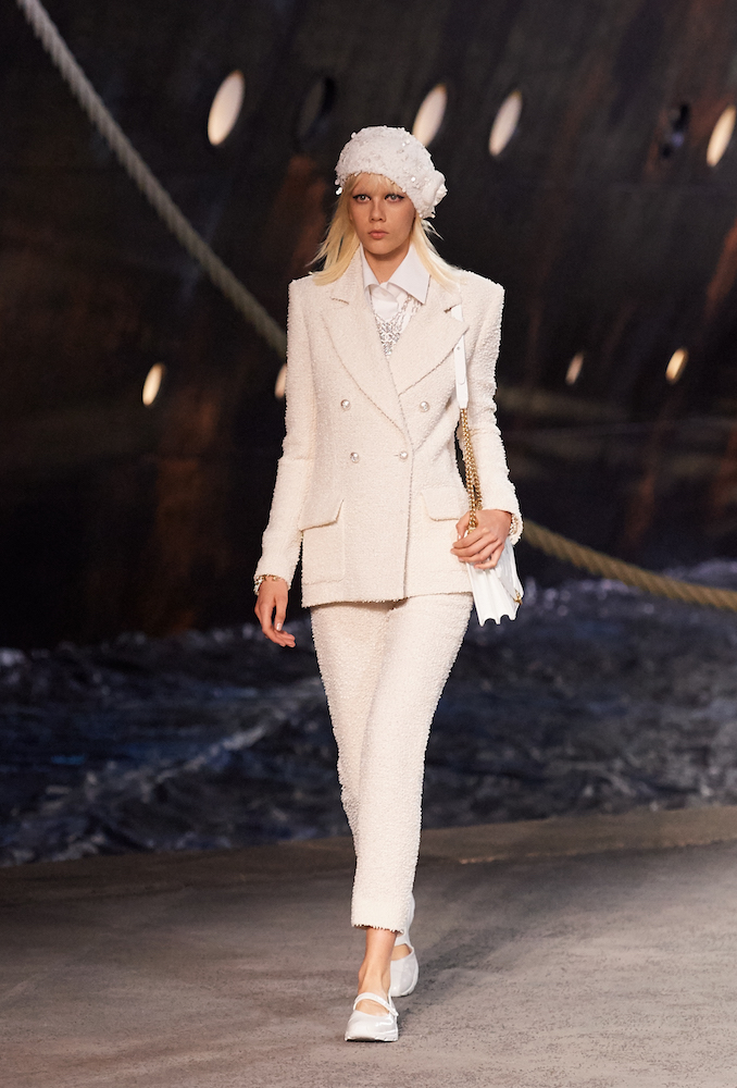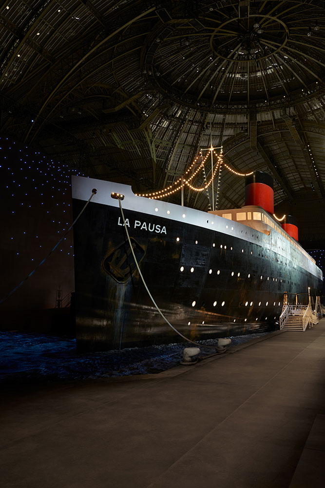 毎度、壮大なランウェイの演出で私たちを驚かせてくれる Chanel は今回、クルーズ船のターミナルを再現。Chanel が贈る豪華客船「La Pausa (ラ パウザ)」号の航海が演出された。この「La Pausa」というのは、Gabrielle Chanel (ガブリエル・シャネル) が構想から内装にいたるまで全てを手掛けたという南仏のロクブリュヌの高台に佇む地中海風のヴィラから取られてい