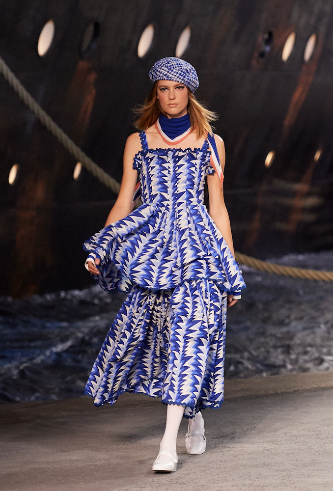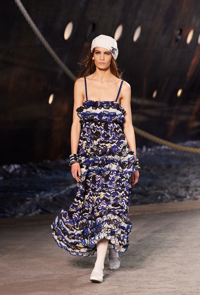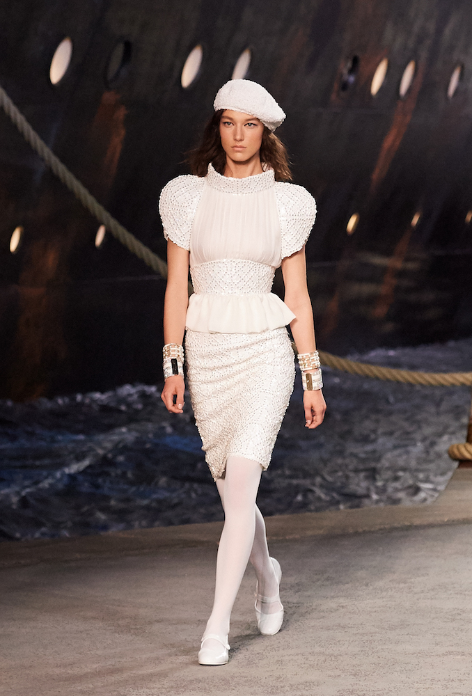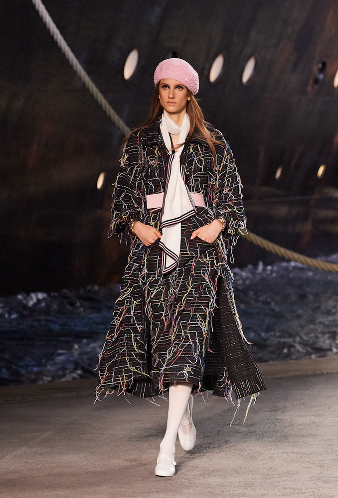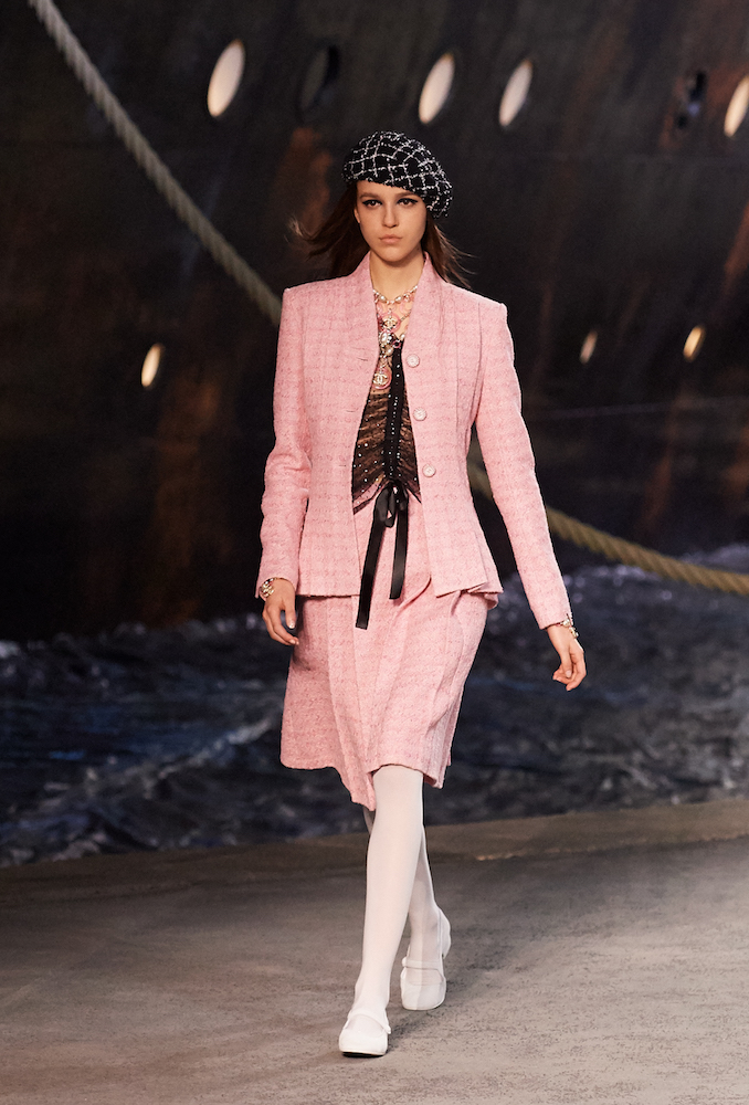 毎度、壮大なランウェイの演出で私たちを驚かせてくれる Chanel は今回、クルーズ船のターミナルを再現。Chanel が贈る豪華客船「La Pausa (ラ パウザ)」号の航海が演出された。この「La Pausa」というのは、Gabrielle Chanel (ガブリエル・シャネル) が構想から内装にいたるまで全てを手掛けたという南仏のロクブリュヌの高台に佇む地中海風のヴィラから取られてい