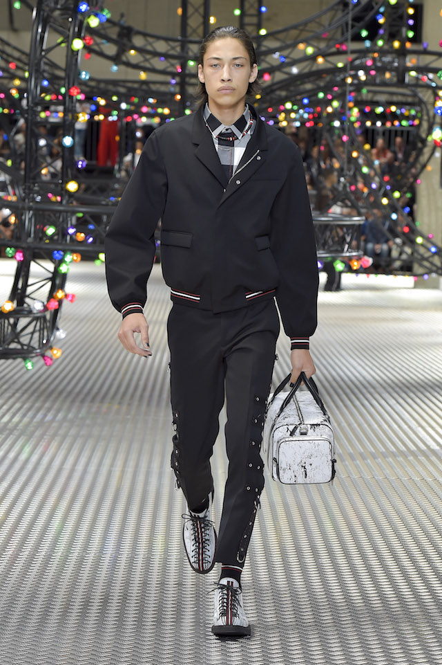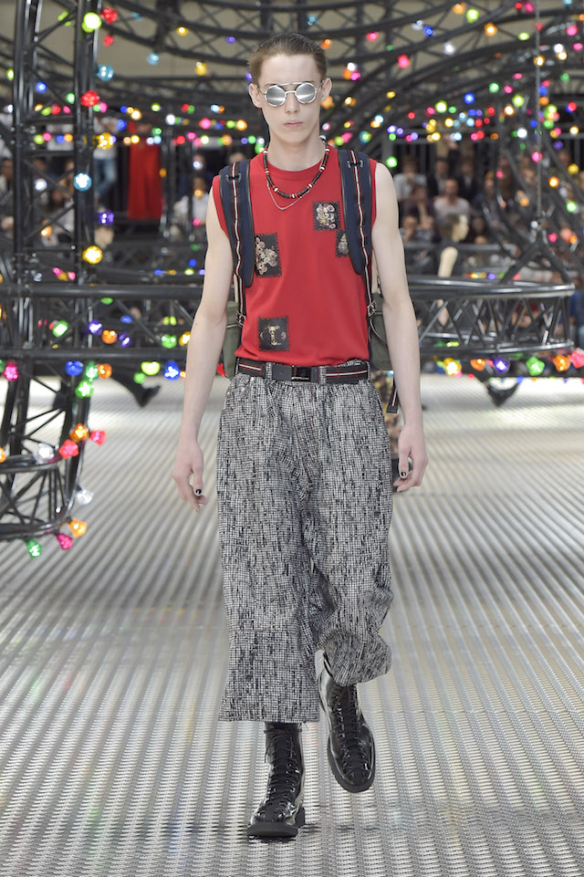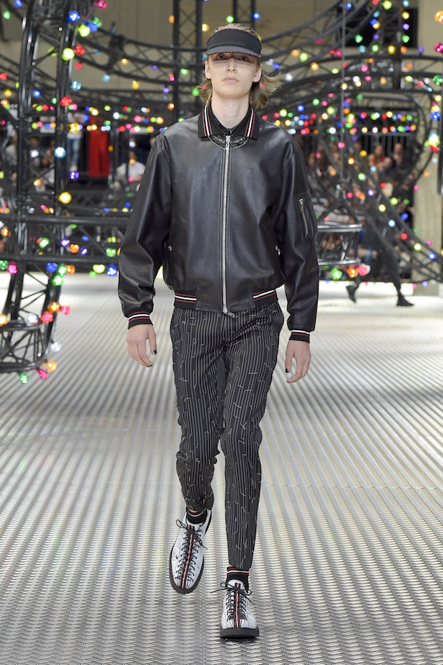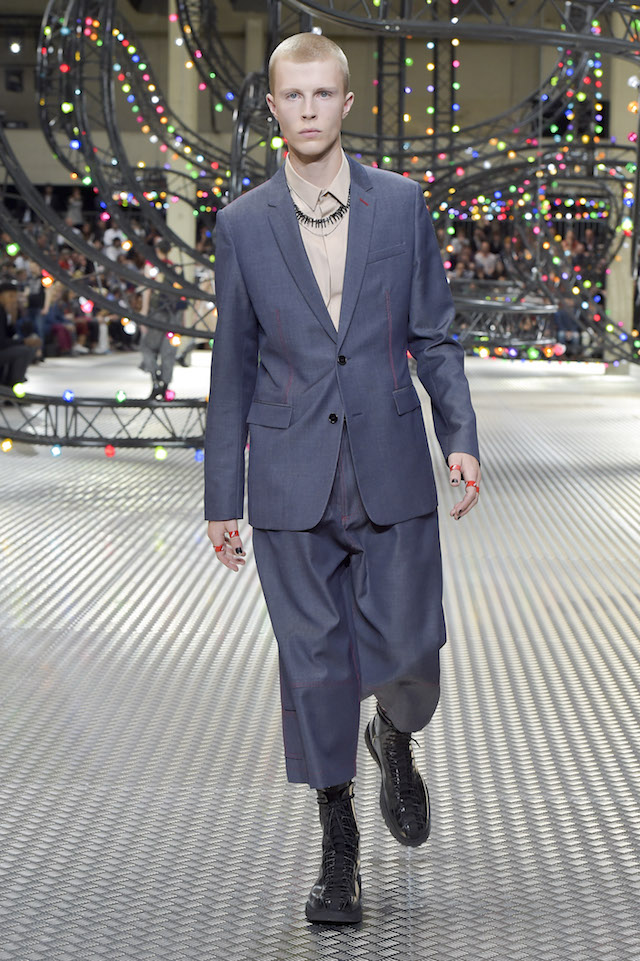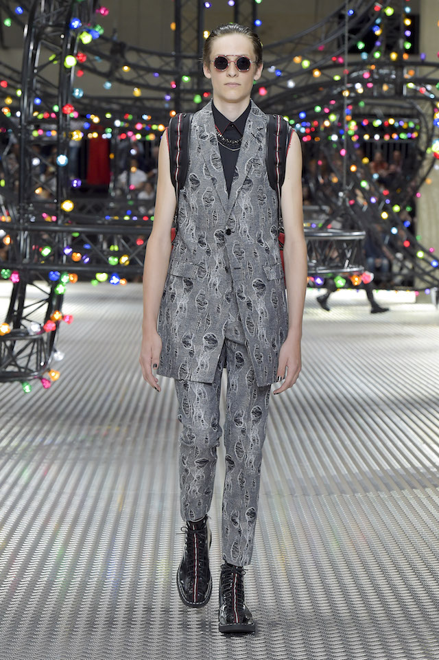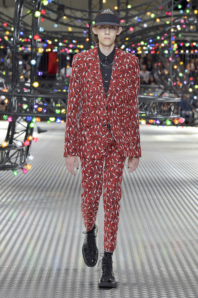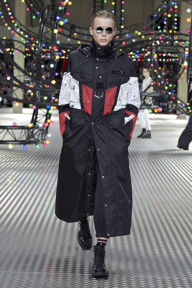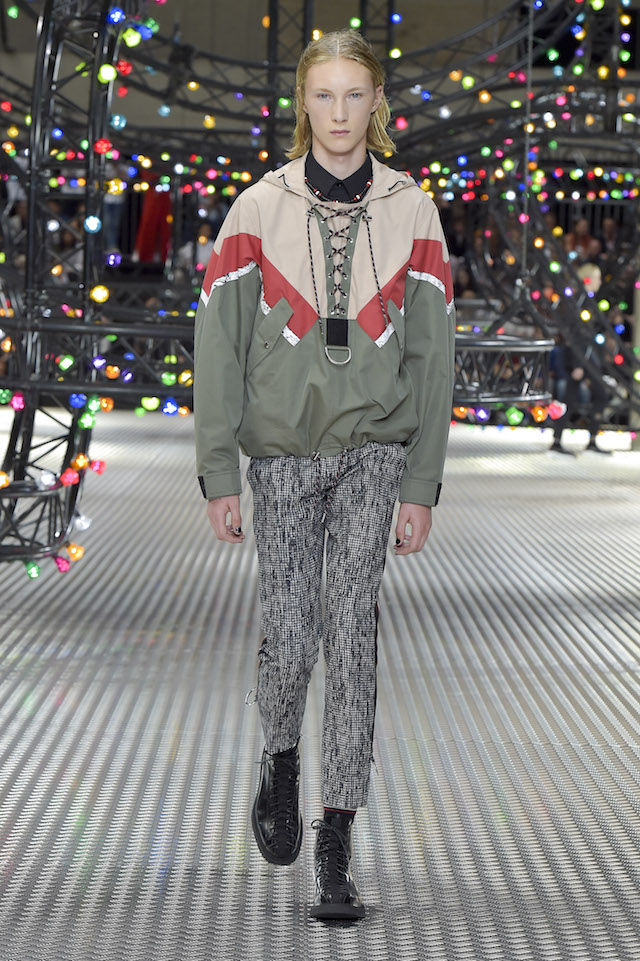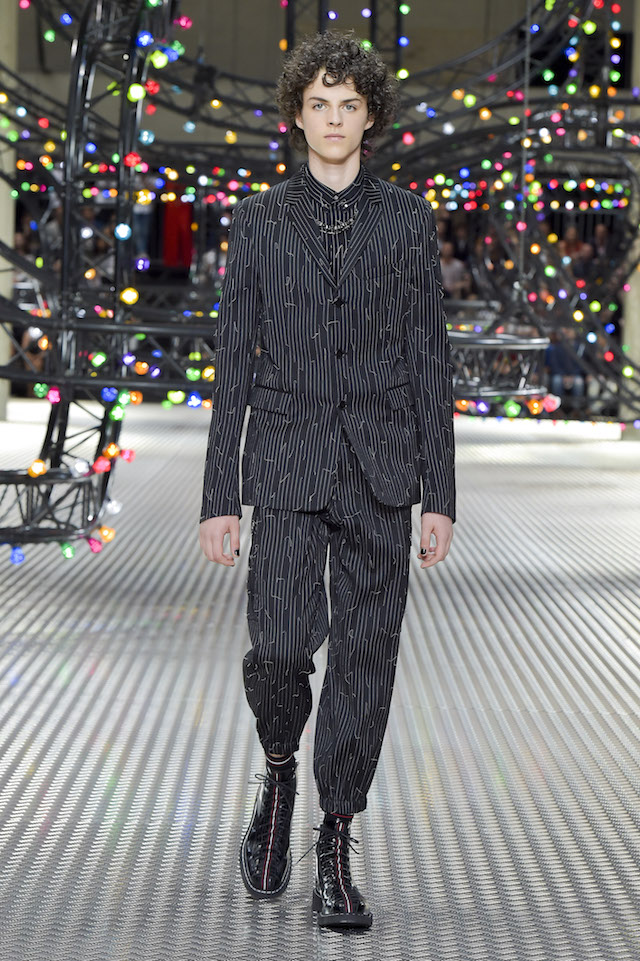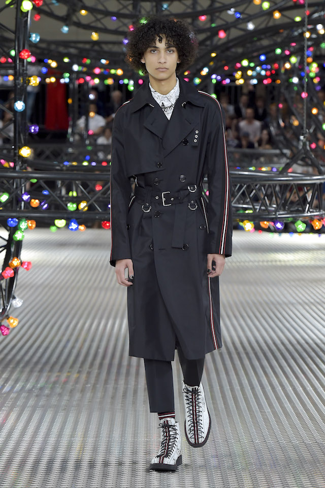 DIOR HOMME (ディオール オム) による2017年サマーコレクションが25日、パリにて発表された。Tennis Club de Paris (テニス・クラブ・ド・パリ) を会場にした今季、クリエイティブ・ディレクターの Kris Van Assche (クリス・ヴァン・アッシュ) がテーマに掲げたのは「Fan Fare (ファンフェア)」。祝祭の開幕を告げる華やかな “ファンファーレ” の如く色とりどりの電飾で彩られた会場は、それと同時にどこか無秩序かつインダストリアルなミザンセーヌを作り上げた。