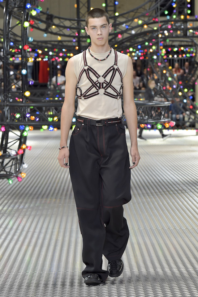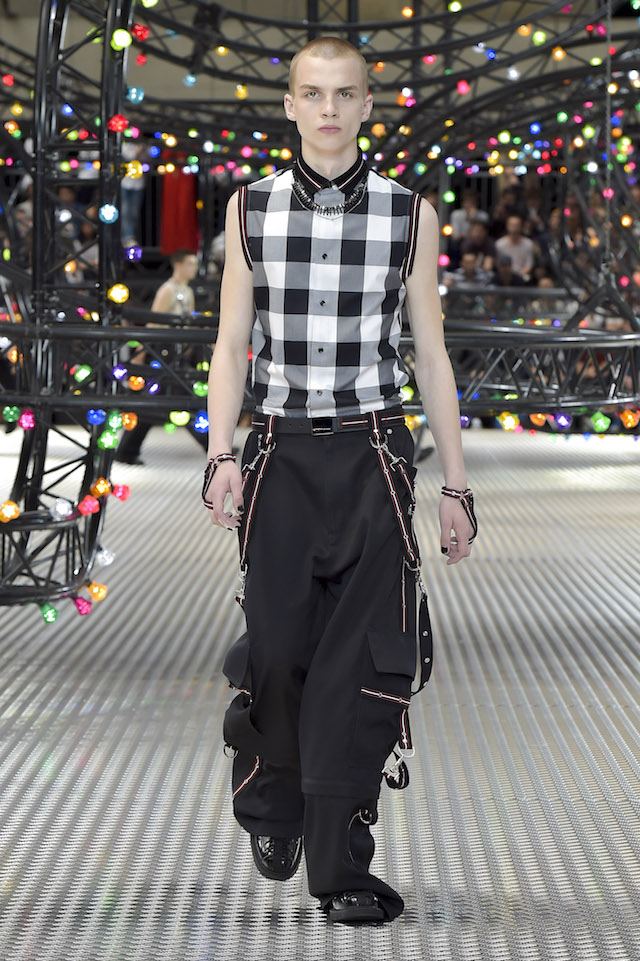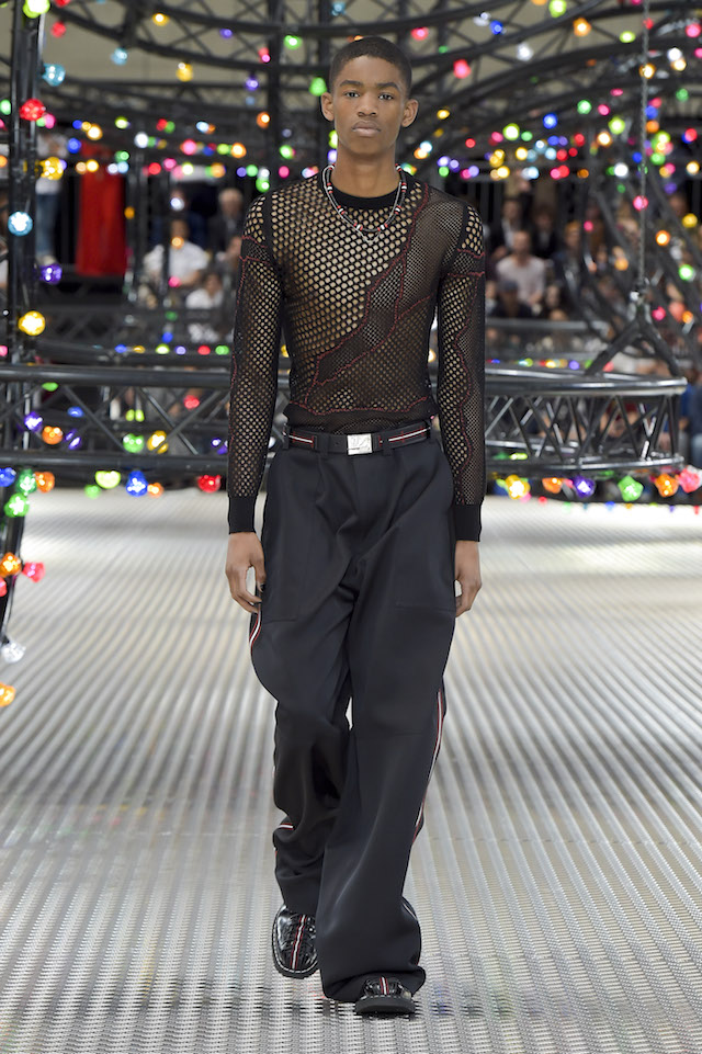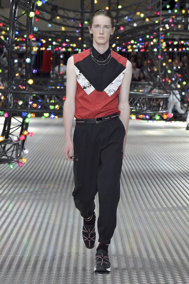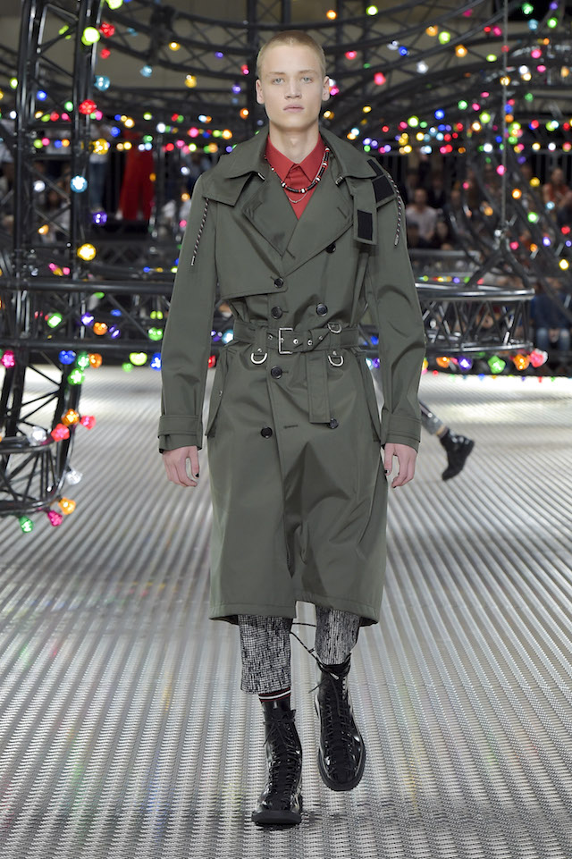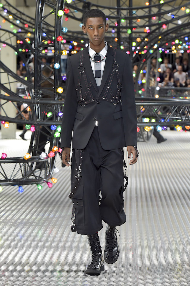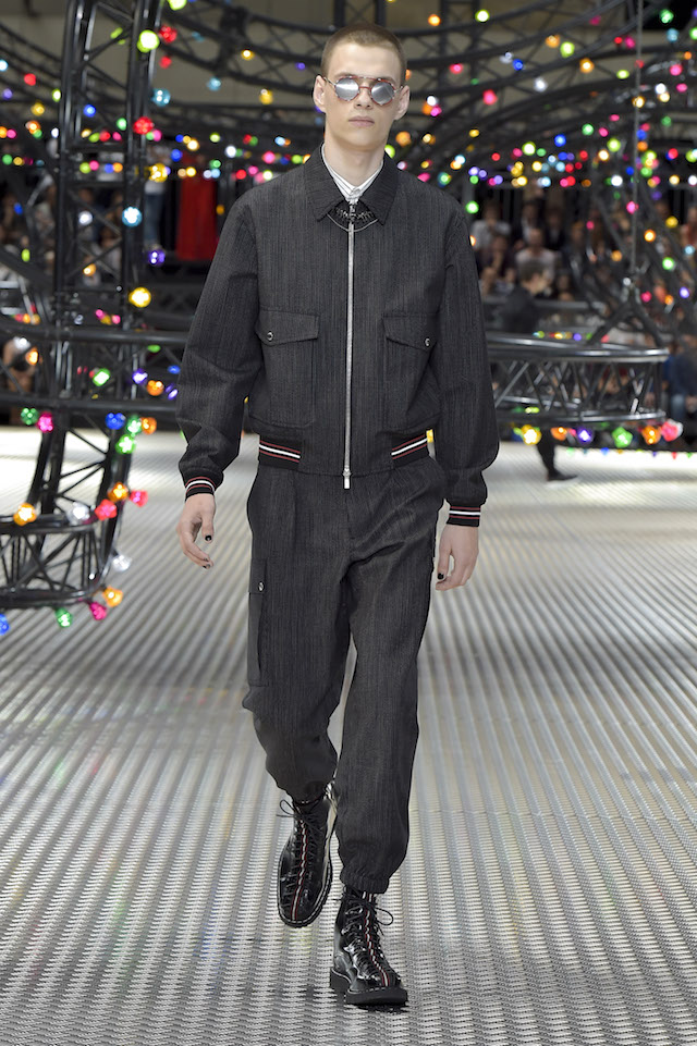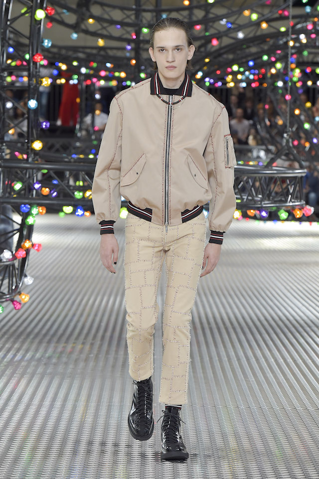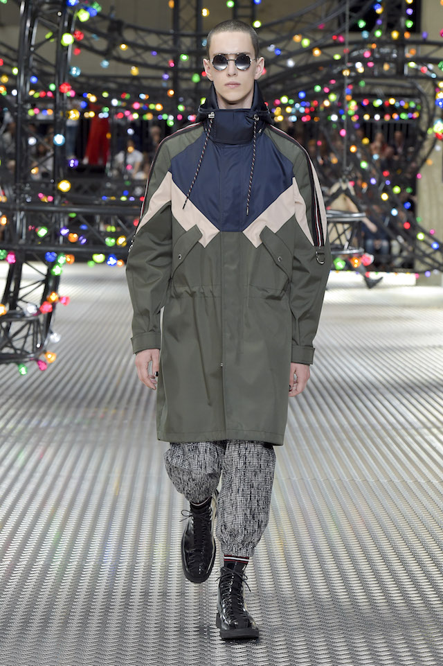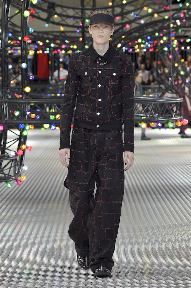 DIOR HOMME (ディオール オム) による2017年サマーコレクションが25日、パリにて発表された。Tennis Club de Paris (テニス・クラブ・ド・パリ) を会場にした今季、クリエイティブ・ディレクターの Kris Van Assche (クリス・ヴァン・アッシュ) がテーマに掲げたのは「Fan Fare (ファンフェア)」。祝祭の開幕を告げる華やかな “ファンファーレ” の如く色とりどりの電飾で彩られた会場は、それと同時にどこか無秩序かつインダストリアルなミザンセーヌを作り上げた。
