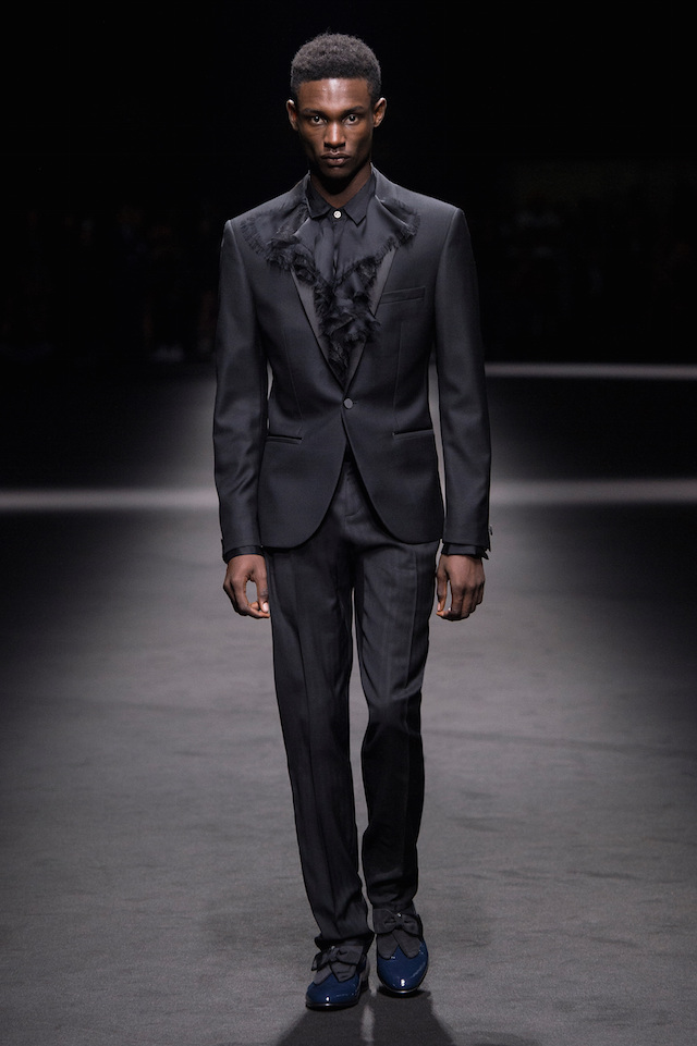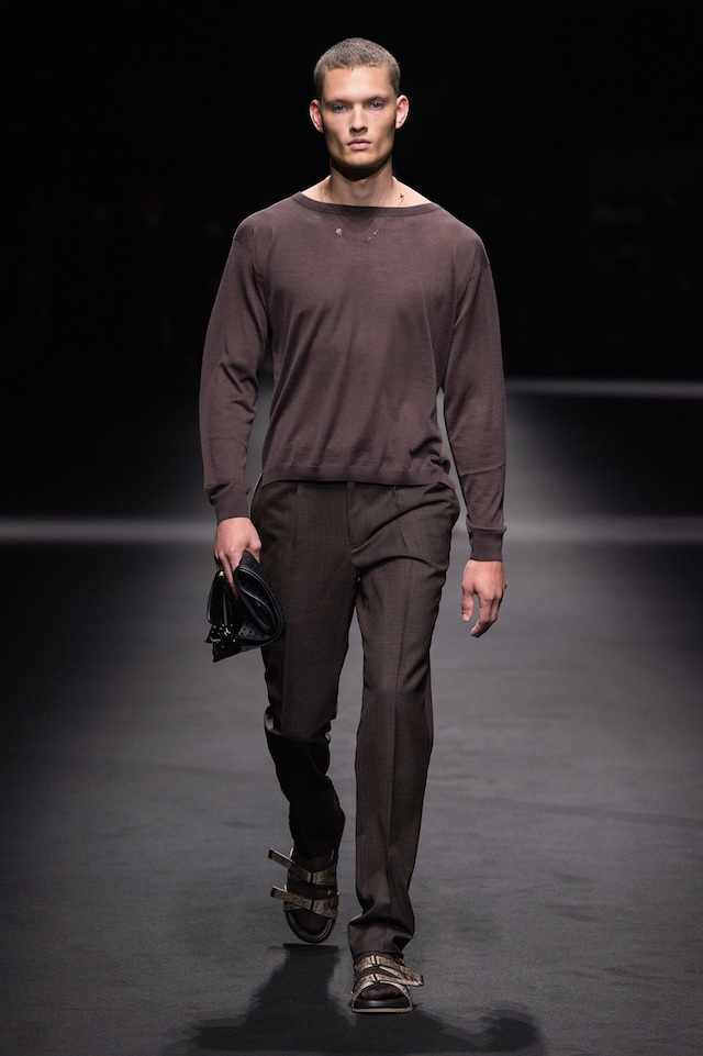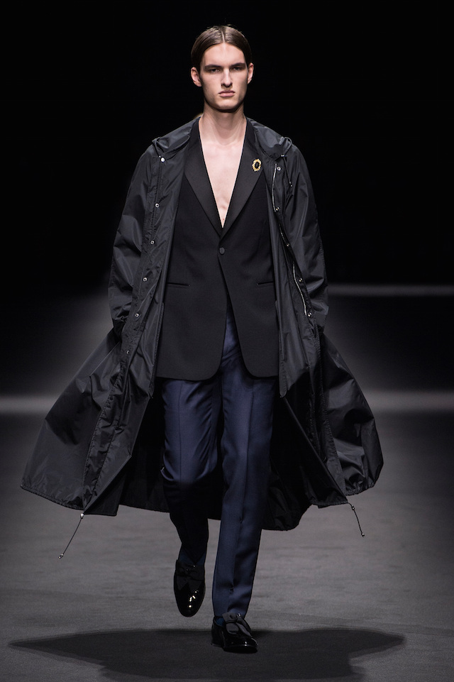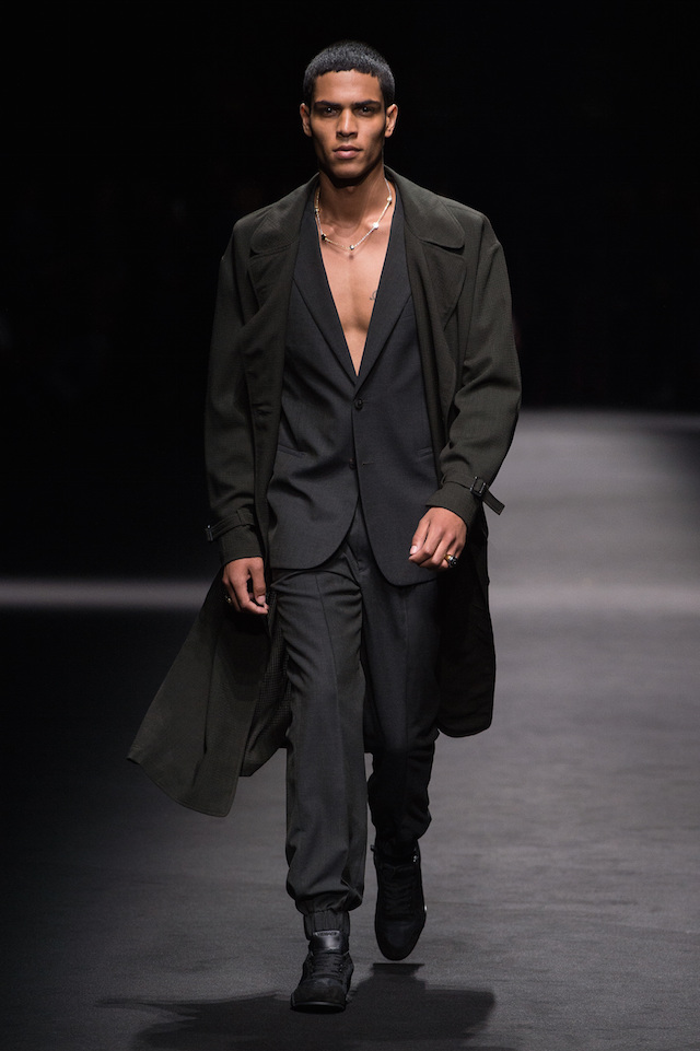今月の頭に公開された、2016-17年秋冬キャンペーンにおいて、巨匠 Bruce Weber (ブルース・ウェーバー) との17年ぶりの共演を果たした Donatella Versace (ドナテッラ・ヴェルサーチ)。今季メンズコレクションでは、隆々しいマッチョモデルたちが纏う力強いイタリアンテーラリングとアンダーウェアという、ブランドのアイコニックなルックを引用しながらも、深みのあるアースカラーとトランスペアレントな素材使いにより軽やかかつ奥ゆかしさのあるセンシュアリティを表現している。