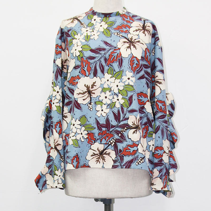 reyn spooner とは、カジュアルだけでなくフォーマルなシーンでも着こなせるハワイアンシャツをメインに制作・販売するアメリカのアパレルブランド。独自に開発したリバースプリントと呼ばれる裏地使いによって生まれる絶妙な色合いや、画期的なボタンダウンのプルオーバースタイルをハワイアンシャツに取り入れた最初のブランドとしてローカルだけでなく世界中で愛されている。今回は reyn spooner の創業時から作り溜められている2000種類にも及ぶプリントパターンと独自にされたオリジナル生地のアーカイブより、TOGA が3種類をピックアップ。肘の部分のラッフルスリットがポイントとなったブラウス、TOGA の定番となっている胸元のウエスタンポケットが特徴的な開襟シャツ、サイドにラッフルスリットが入ったショートパンツの3型を展開する。