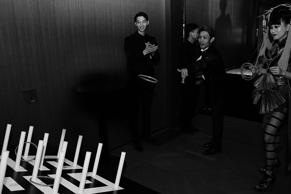 Clare Waight Keller の至極のクリエーションを目の当たりにした後に待ち受けるのは、Givenchy 流の”おもてなし”が凝らされたゲームルーム。巨大だるま落とし、イライラ棒、巨大ガラガラ、輪投げ、ヨーヨー釣りといった懐かしのゲームが用意され、童心をくすぐられたゲストの多くが夢中でゲームに興じていた。隣接する庭は”体験テラス”とされ、タロット占いやドールハウスなどが設置され、怪しげな空間に。会場では、エレクトロニック・ミュージックユニットYoung Juvenile Youth (ヤング・ジュヴナイル・ユース) によるミニライブや DJ PELI によるパフォーマンスも披露され、まさに見所満載の忘れがたい一夜となった。