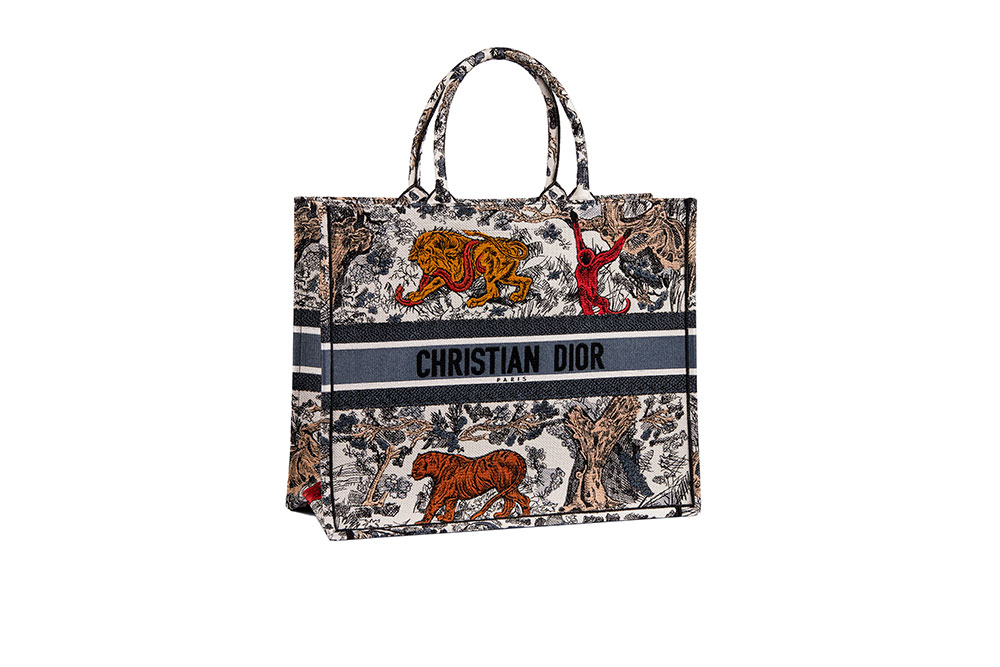 「トワル ドゥ ジュイ」とは、1947年の創業当時よりメゾンが愛用してきたテキスタイルで、パリ アヴェニュー モンテーニュ30番地にムッシュ ディオールが初めて構えたブティックの壁にも用いられるなどブランドにとって重要な意味を持つアーカイブのひとつ。Maria Grazia Chiuri (マリア・グラツィア・キウリ) は今回、この「トワル ドゥ ジュイ」にトラやサル、ライオン、ヘビといった野生動物を加え、新たなテキスタイルへとアップデートさせた。人気の「ブック トート」や「レディ ディオール」、「サドル」バッグに加え、アクセサリーにもモチーフとしてこの野生動物たちが登場。他にも Cordélia de Castellane (コーデリア・ドゥ・カステラ―ヌ) がデザインを手がける Baby Dior (ベイビー・ディオール) のぬいぐるみをはじめとするバラエティ豊かなアイテムにも「トワル ドゥ ジュイ」がフィーチャーされている。