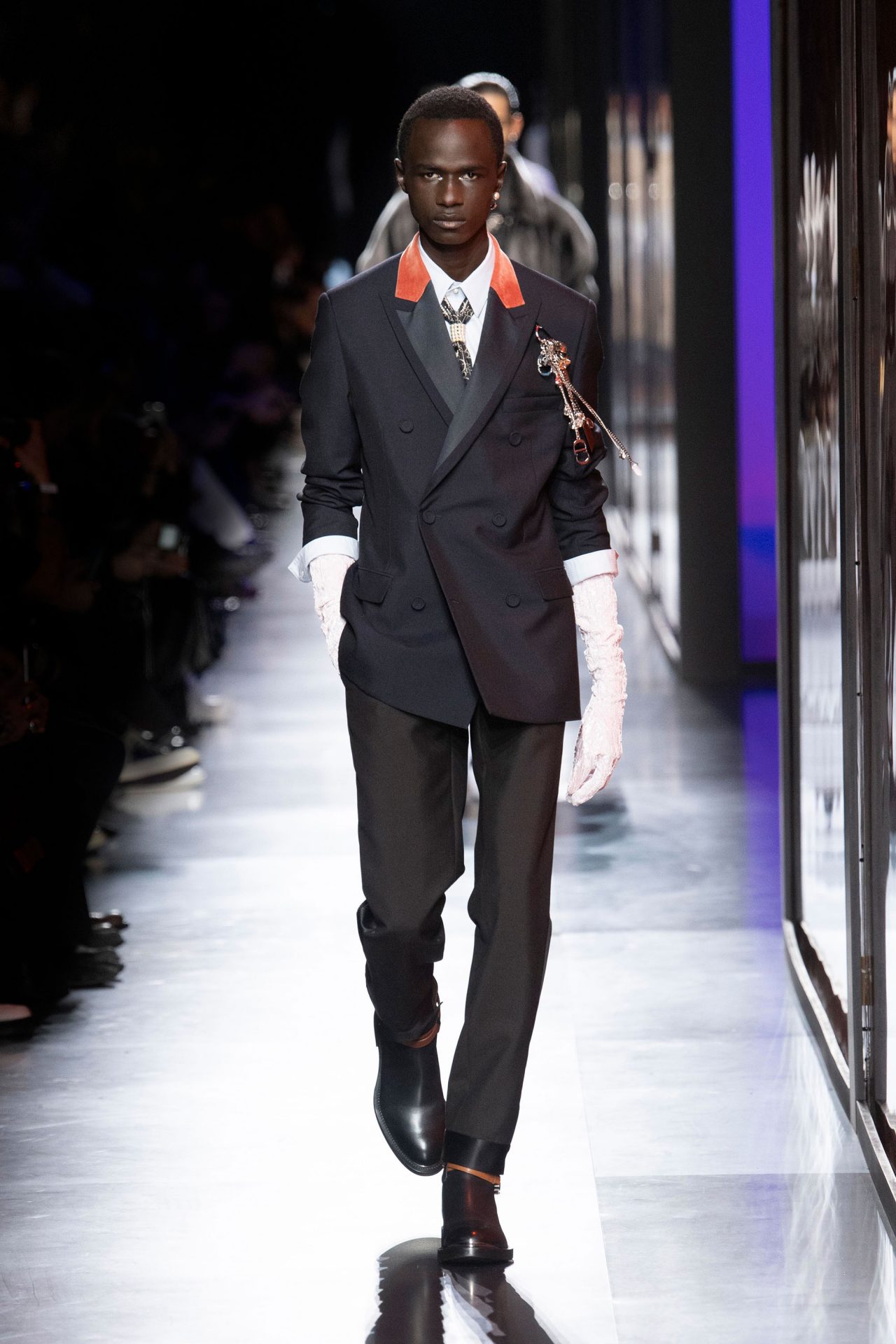 H: GUCCI の小物使いはすごく気になります。あと、このブラックモデルでリーゼント、ってやばくないですか。昔は結構あったけど、今これを出すのか。Alessandro Michele (アレッサンドロ・ミケーレ) はやっぱすごい。