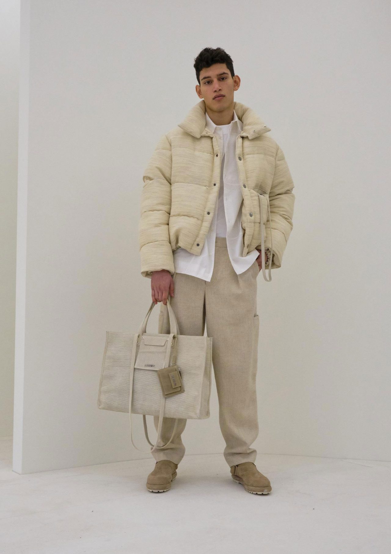 H: OKです (笑)。このオールホワイトのルックが最高。白Tの上に白シャツをオープンで着て、さらに白ダウンを羽織る感覚。これをショーに組み込む勇気。すごい。