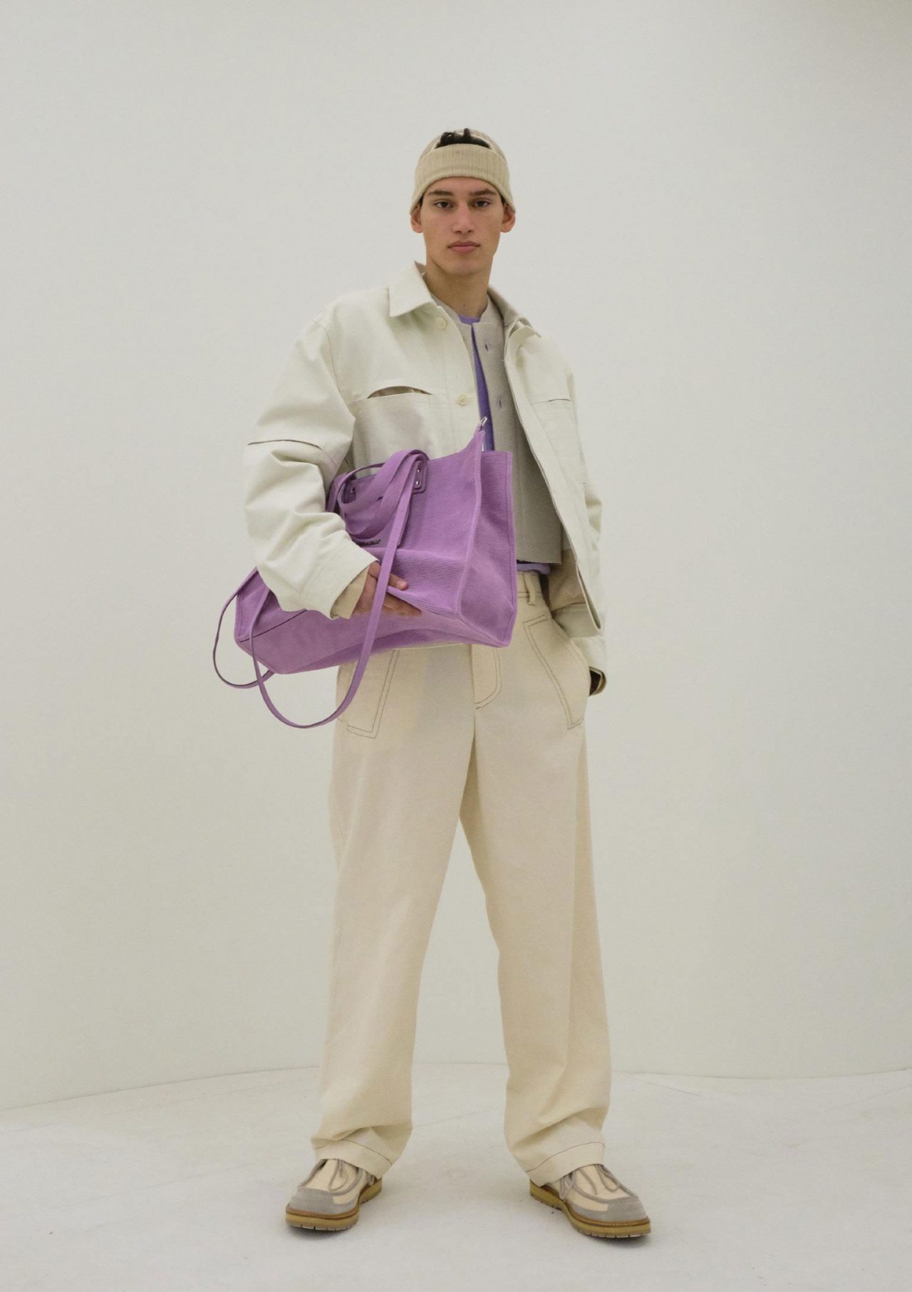 G: JACQUEMUS はレディスもたくさん交えて出していたので、私も印象に残っています。ライラックの差し込み方とか、色使いがいいなと。ところで JACQUEMUS はランウェイじゃなくてルックブックの画像を手配してしまいまして、こちらで失礼します ↓