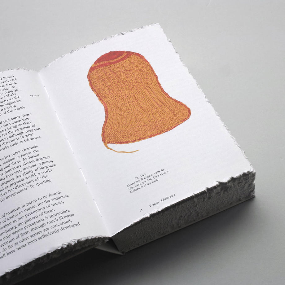 中島: この本は Sheila Hicks の確か初期の作品集で、デザインはオランダの Irma Boom (イルマ・ボーム) というデザイナーが担当しています。Irma Boom 自身がこのデザインのプランを出したみたいなんですけど、やはりとても特殊な加工なためものすごくお金がかかるというので、クライアントは最初拒否したらしいんです。それでも Irma Boom はこのプランを押し通して出版した結果、世界的に評価されてすぐ完売。今第五版くらい再販されています。