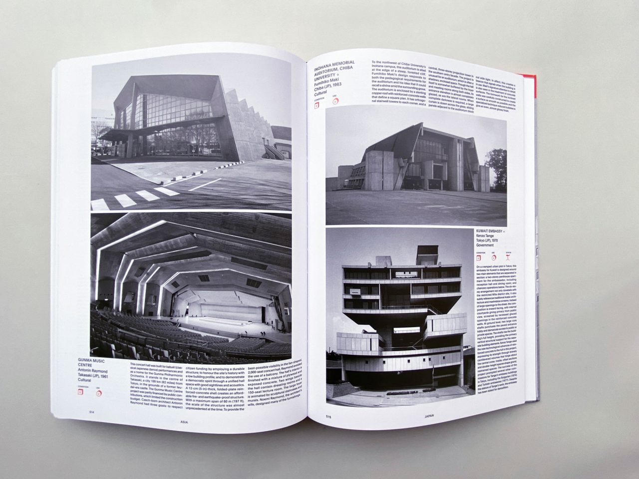 イギリスやフランス、ドイツでは急激に増える住宅需要に応えるため、インドや南アフリカでは植民地支配からの解放による都市計画のため、といずれも復興や変化を象徴する動向と強く結びついています。戦争のダメージが少なかったアメリカ本土でも、教育機関や国家機関など、急速に拡大する社会を象徴する建造物に、ブルータリズムの様式が採用されています。日本でも 「代々木体育館」 や 「群馬音楽センター」「国立京都国際会館」「香川県庁舎」「旧香川県立体育館」「倉敷市立美術館」 など、都市計画と結びつくような大型の施設が全国各地に建設されています。