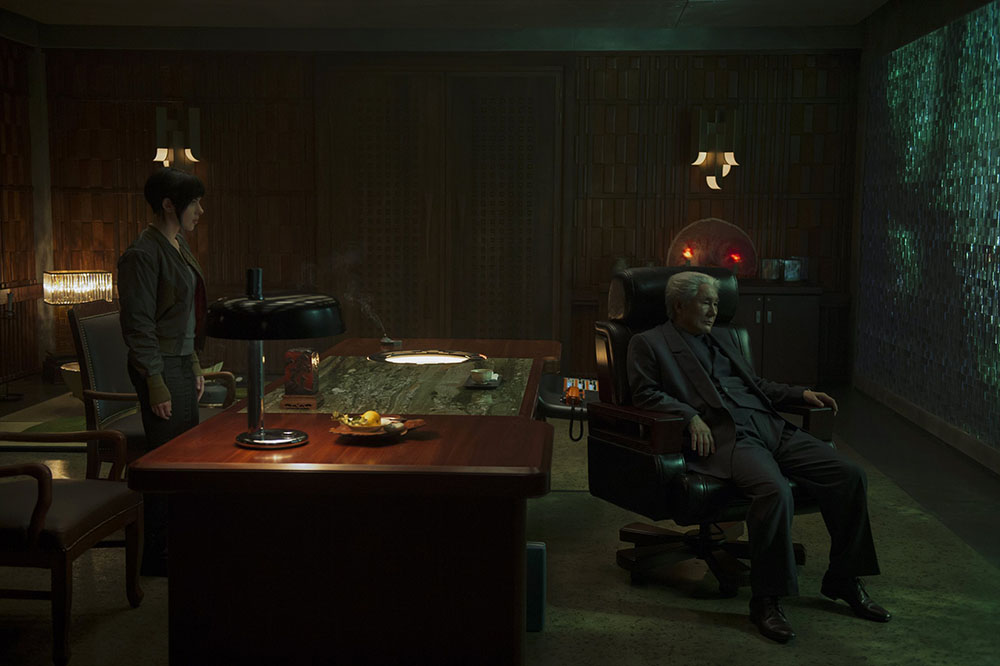 素晴らしい衣装は光学迷彩だけではない。「俳優は衣装に袖を通して初めてキャラクターになりきれるんだ」と強調する監督は映画をつくる上で衣装に対して並々ならぬこだわりを持ち、あらゆる衣装のデザインに携わった。そんな監督のビジョンを形にしたのは、衣装デザインを担当した Kurt and Burt (カート アンド バート) のコスチュームデザイナーKurt Swanson (カート・スワンソン) とBart Mueller (バート・ミュラー)。特に注力したのは、福島リラ演じる芸者ロボットの衣装。神山健治によるアニメシリーズ『攻殻機動隊 STAND ALONE COMPLEX』では伝統的な芸者の姿だったが、今回の映画では日本文化を基礎に新たなアイデアが加わり、より機械的でSF感の強い新しい姿となっている。伝統的、非伝統的な要素を混在させており、例えば帯のデザインは顔と同じ電気回路の模様が使われているが、帯そのものは従来の手法で作られているという。顔の中のマシーンが露わになるマスクは、当初シリコンも考えられていたそうだが髪も含めて硬質なものに。芸者ロボットという名にふさわしい妖艶さと不気味さを兼ね備えた。特別映像では、衣装について語る監督や Bart と Kurt、また福島リラがマスクと衣装を身に纏い、実際に演じている場面も見ることができる。