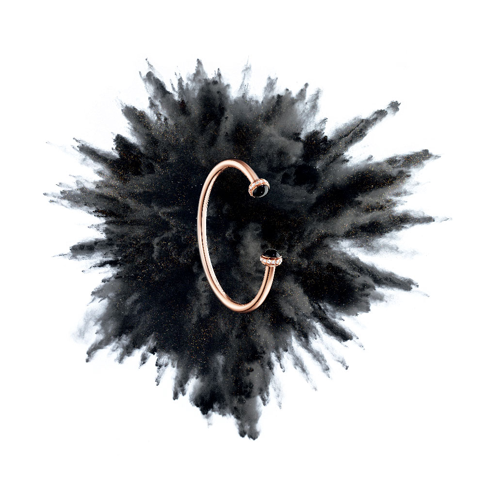 その洗練されたデザインと、回転式のパーツを取り入れたユニークな構造で知られる「Possession」。今回新たに仲間入りを果たしたのは、ピンクゴールドのバングルやネックレスに、目の覚めるようなオーナメンタルストーンをあしらったモデル。深淵な輝きを放つオニキス、スタイリッシュなターコイズ、情熱的なカーネリアン、エキゾチックなマラカイト、そして神秘的なラピスラズリ。表情豊かなカラーストーンは、異素材でミックスすることで個性あふれるスタイリングを演出してくれる。