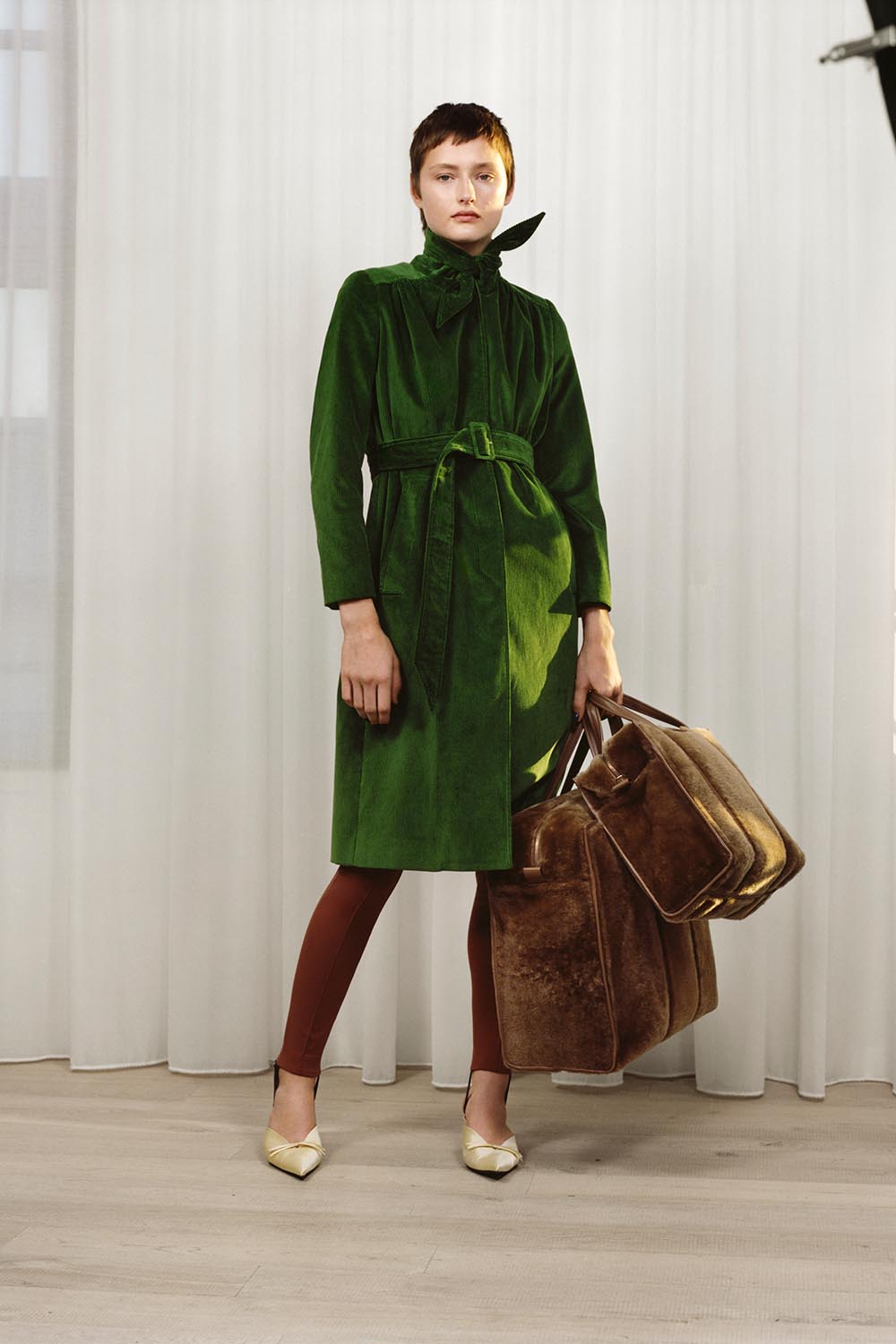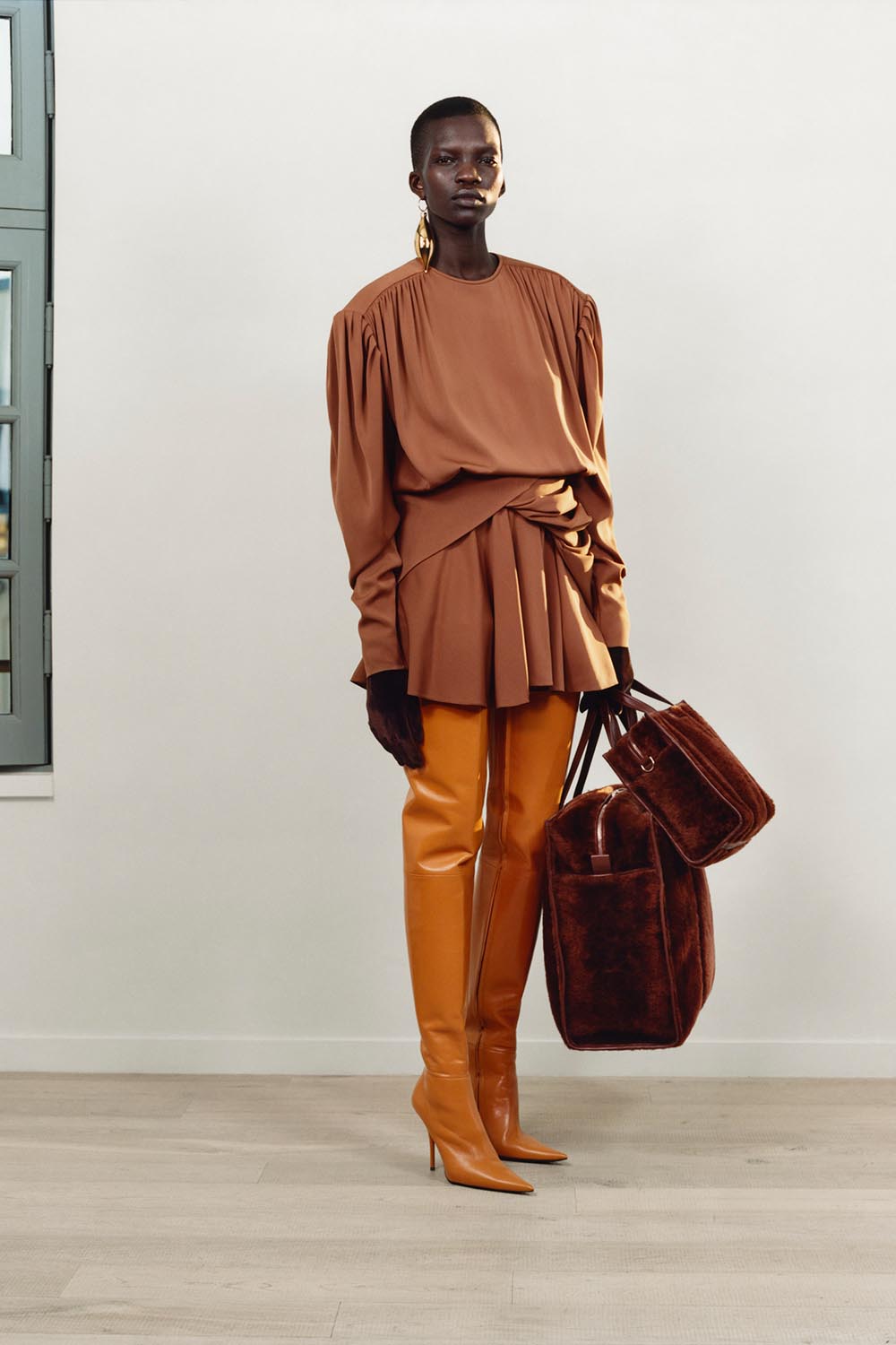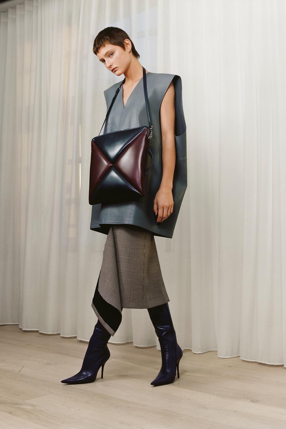 エディトリアルの常連であるクリエイティブなアクセサリー今季も健在。シューズ、バッグ、そしてジュエリーまで幅広いアイテムで展開されるラインナップには、春夏に引き続き登場したジャージークレープのパンツとスティレットシューズ、様々なサイズと素材で登場したアイコンバッグ「BAZAR (バザール)」バッグ、そして60年代のアーカイブを再現したクチュールブローチなどが含まれている。
