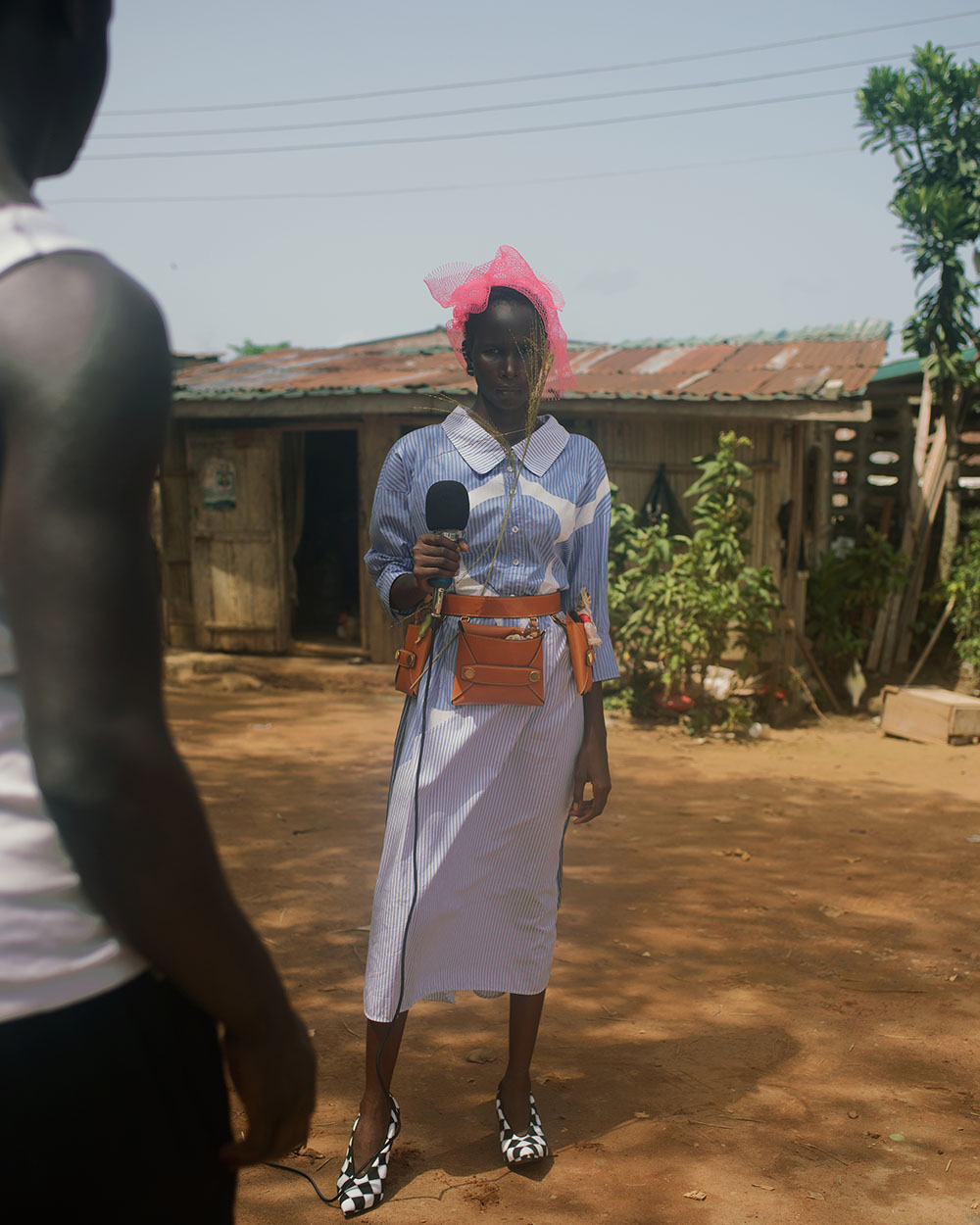 ストリートや Instagram で人を見て、興味を惹かれるかによります。美しいものを見ると、それを捉えたいという思いに駆られます。場合によっては、単に人々に近づいて見るという方法ではダメなときもあります。 今回の撮影では思い描く人々をキャストする際、幸運にも助けを得ることができました。ナイジェリアでは、人々に話しかけるときには落ち着いて、自信を持った態度でいることが大切です。