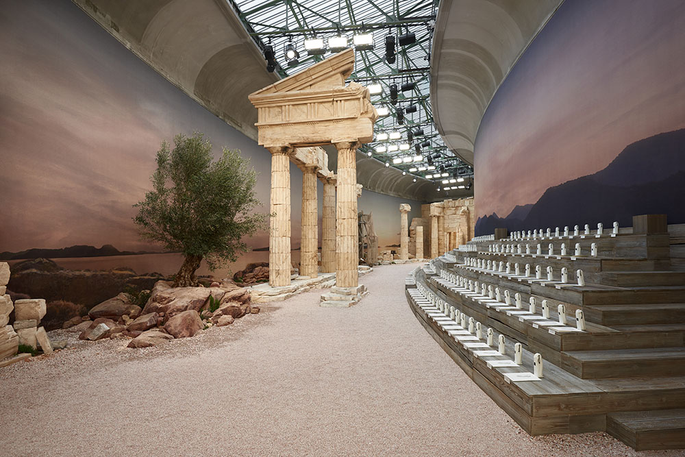 ランウェイにロケットを登場させ、前シーズンの話題をさらったKarl Lagerfeld (カール・ラガーフェルド) 。Chanel (シャネル) の2018年クルーズ コレクションでは、文化の起源である古代ギリシャにインスピレーションを受けた。神話に登場する女神たちを讃える絵画や美術品が数多く生み出されるなど、女性を最も美しく表現していた当時をソースに、“理想化されたギリシャ”を提示。パリ グランパレに荘厳な古代神殿を建てた。