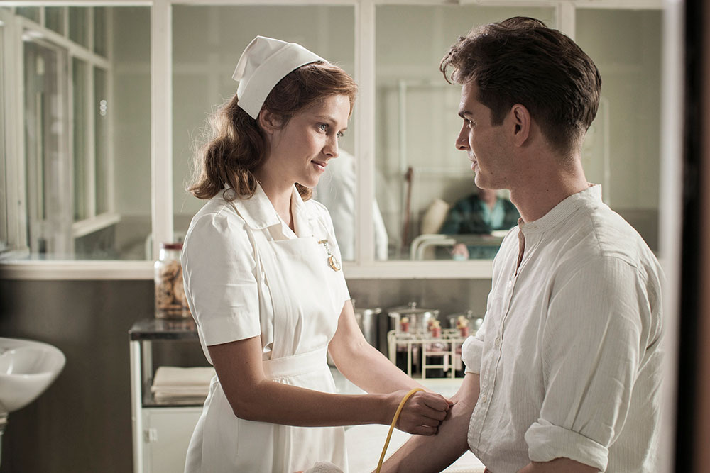 第二次世界大戦の激戦地沖縄に、難攻不落の “ハクソー・リッジ” と呼ばれた断崖絶壁があった。多くの死者を出すほど壮絶な戦いの場に武器を持たずに命を救うために乗り込んだ男、Desmond Doss (デズモンド・ドス) の実話から誕生した映画『ハクソー・リッジ』が 2017年6月24日(土) より公開する。俳優としての活躍はもちろん、監督としても『ブレイブハート』(1995) でオスカー5部門を獲得した Mel Gibson (メル・ギブソン) が10年ぶりに監督を務めた。主演は Martin Scorsese (マーティン・スコセッシ) 監督作『沈黙―サイレンス―』(2016) で演技派俳優としても高く評価された Andrew Garfield (アンドリュー・ガーフィールド)。本作でもリアリティを追求する Mel Gibson の演出は遺憾無く発揮されており、まるで自分が戦場にいるかのような臨場感に圧倒されるだろう。
