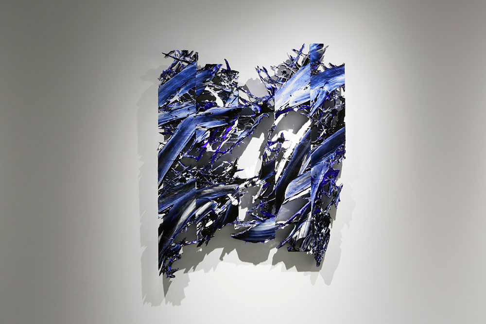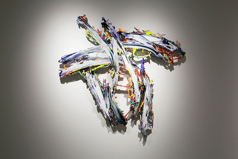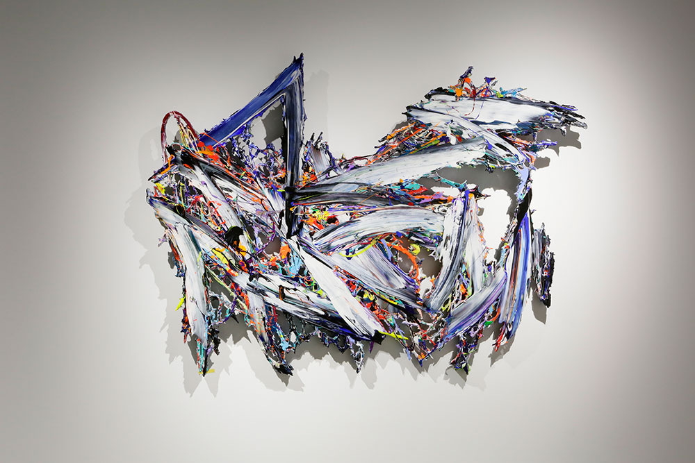 ブラッシュストローク (筆跡) をカット・コラージュし作り上げられる、彫刻のように立体表現に溢れた独創的な作品はニューヨークをはじめ世界各国に熱狂的なファンを持つ。HIP HOPのテクニック “サンプリング” から着想を得たと言われるその作風は、ストリートシーンからの人気も高く、STUSSY (ストゥーシー) やALIFE (アライフ) などアメリカを代表するストリート・カルチャーのブランドとのコラボレーションでも知られている。本展では先月開催された個展「イメージの力」にて発表された OUT OF BOUNDS からさらに進化したシリーズである SPLITTING HORIZON が初お披露目となる。過去の個展では作品が完売するほどの人気ぶりに本展でも期待が高まる。