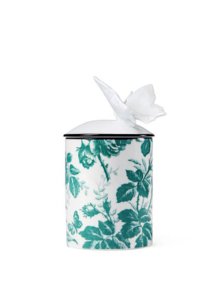 Alessandro Michele は、自身のファッションに対する革新的なクリエイティブビジョンとランウェイに登場するアイコニックなモチーフを本コレクションにも多く取り入れ、コレクションにインスピレーションを得たパターンやカラー、デザインのすべてを家具や室内装飾品、陶器小物に落とし込んでいる。1735年フィレンツェで創設した歴史ある陶磁器メーカー リチャード・ジノリ社とコラボレーションした陶器小物からは、Gucci を象徴するカラーリングやデザインがあしらわれたキャンドルホルダー、ポット、立体的なデザインのインセンスホルダーなどが登場する。
