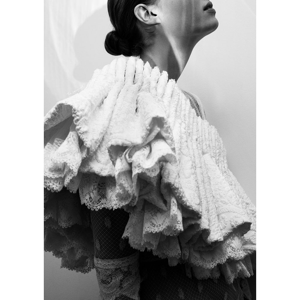 本インスタレーションは THE CAPE REIMAGINED をテーマに、ファッションショーに登場した1点もののケープの展示や、20部限定のケープブックが販売される。展示されるケープは1点ずつ手作業で仕立てられており、中には約560時間もの制作時間がかかったものや153,000以上のステッチが施されたものなど、非常に手間のかかる作品も存在する。素材もバラエティーに富んでおり、アーカイブから採用したレース、コットン、チュールから、意外性の高いフェザーやクリスタル、フェルトウール、タッセルなど多様なマテリアルが登場。職人の手作業を間近で見ることのできる貴重な機会、お見逃しなく。