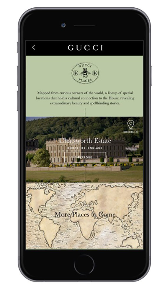 この後も、Gucci の折衷主義的な美意識を反映し、紋章や建築物のデザインのディテールといった、それぞれの「Gucci Places」を示唆するモチーフが表現されたスペシャルなバッジがデザインされる予定。さらにアプリは進化し、ユーザーのモバイル端末のGPS機能を利用し、ユーザーが「Gucci Places」に登録された場所に近づくと、そこを訪れるよう呼びかけるプッシュ通知を送信。また到着後にアプリでチェックインすると、その場所の特製バッジが届く。さらに、テキストや写真、動画によって、それぞれの「Gucci Places」の詳しい情報の提供や、アプリ内のインフォメーションから、その場所の管理者と直接メールや電話で連絡をとったり、ウェブサイトにジャンプすることも可能となる。さらにアプリには開催中のイベント専用のコーナーも設置され、イベントのプログラムをアプリから見ることができるようになる。今後、より多くの「Gucci Places」を公開するとともに、個性豊かな場所にインスピレーションを得てデザインされた限定アイテムを発表していく予定だ。無限に湧き出る泉のような Gucci の活動にますます目が離せない。